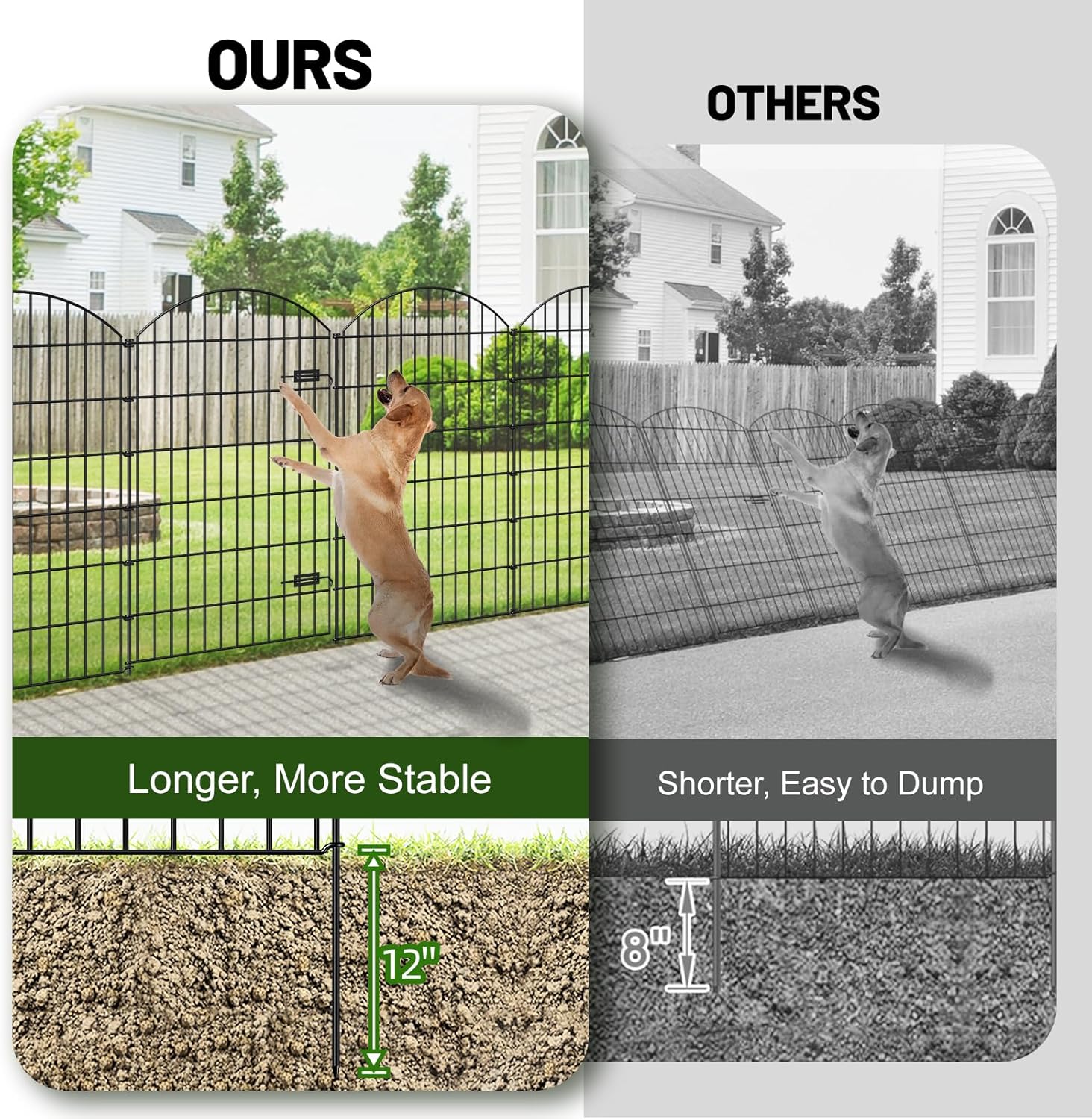 - STURDY AND STABLE: This garden gate and fences 48” tall is welded by Gauge 9 thickness iron wires, the stakes are 10mm in diameter, and can be extended pretty far into the ground which is fairly steady, it works well as a fence with gate for big or medium size dogs.