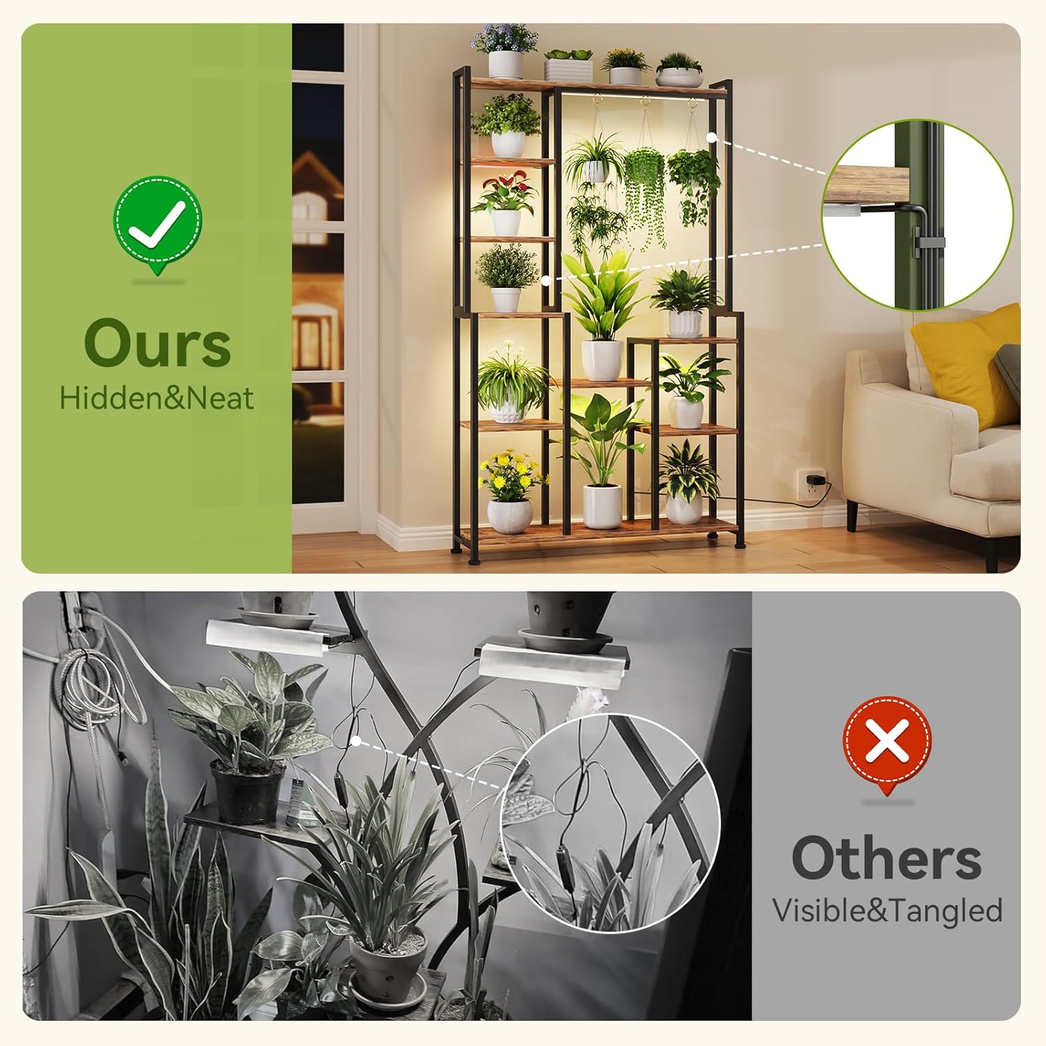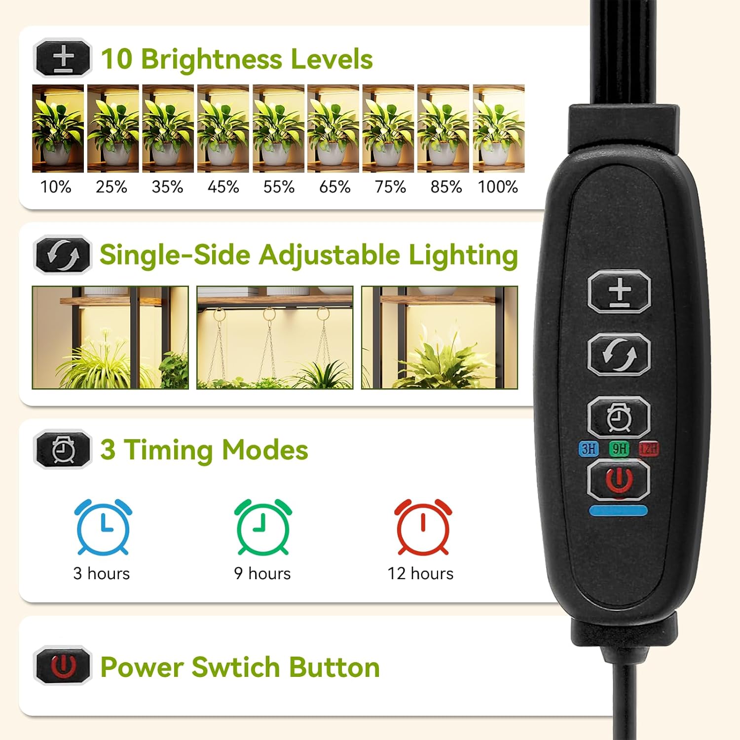 - đ±ăPlant Stand with 5 Grow Lights (Hidden Wire)ă Comes with 1x 23-inch and 4x 9-inch adjustable light strips, allow plants to photosynthesize indoors, with 3h/9h/12h automatic loop timer and 10 dimmable settings, bright enough light for them to thrive, without the need to frequently move plants outdoors for sunlight.