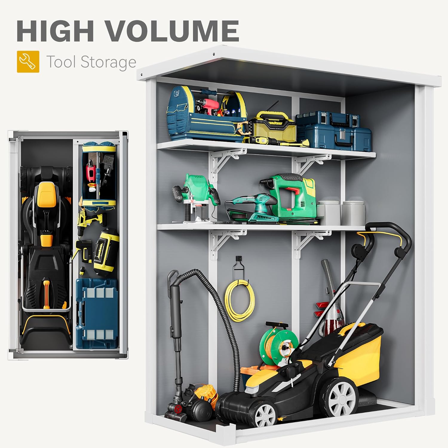 - Easy and Safe Access: This garden shed outdoor storage features double doors (23.6''L x 53.5''H each) for easy entry, even for large items; The lockable latch (lock not included) adds extra security for backyard, garage, or patio storage