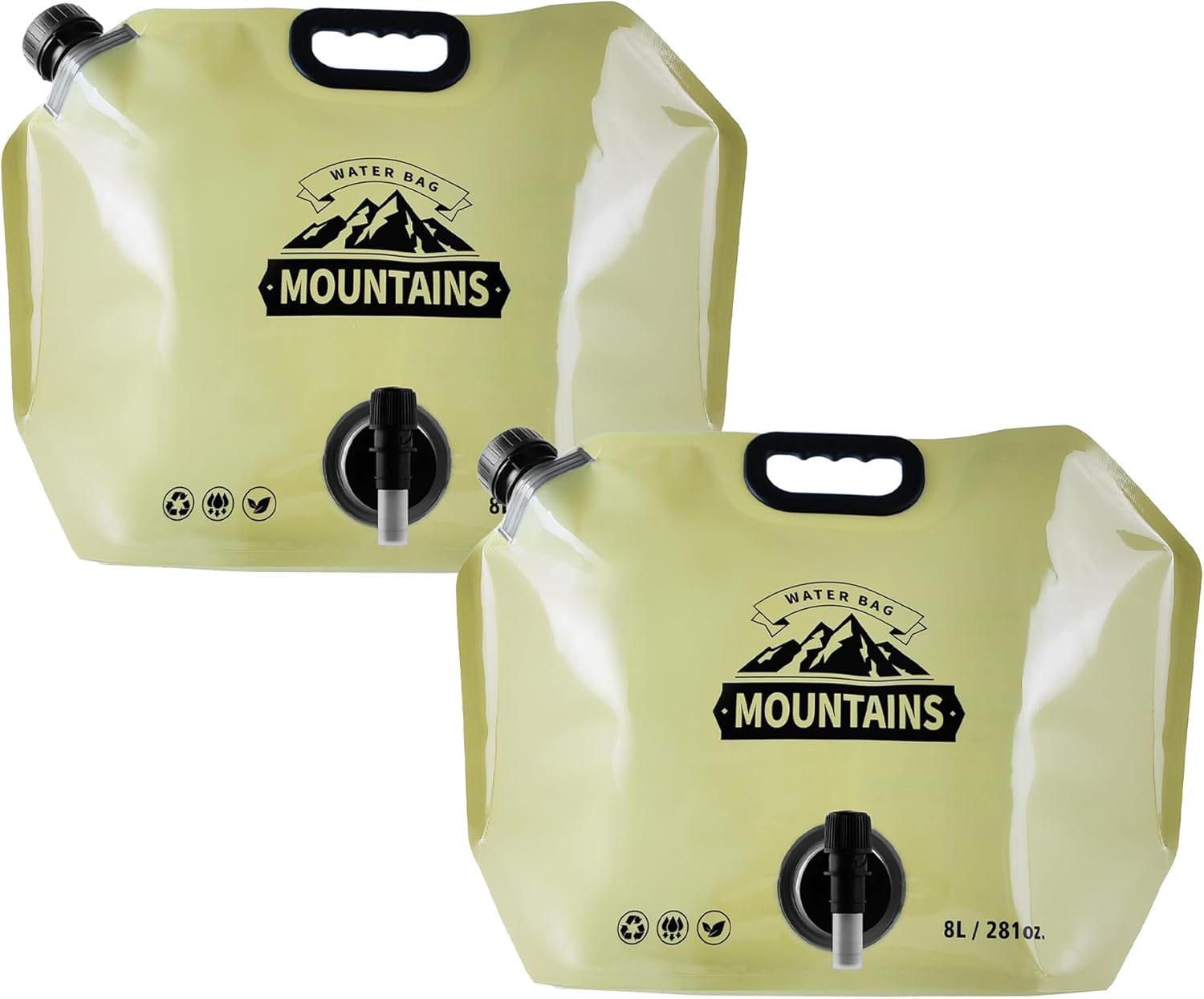 Collapsible 8L Water Storage Bag, BPA-Free Portable Folding Water Jug with Adjustable Faucet, Leakproof Emergency Water Bag for Camping, Hiking, Riding, Outdoor Sport (BEIGE, 2)