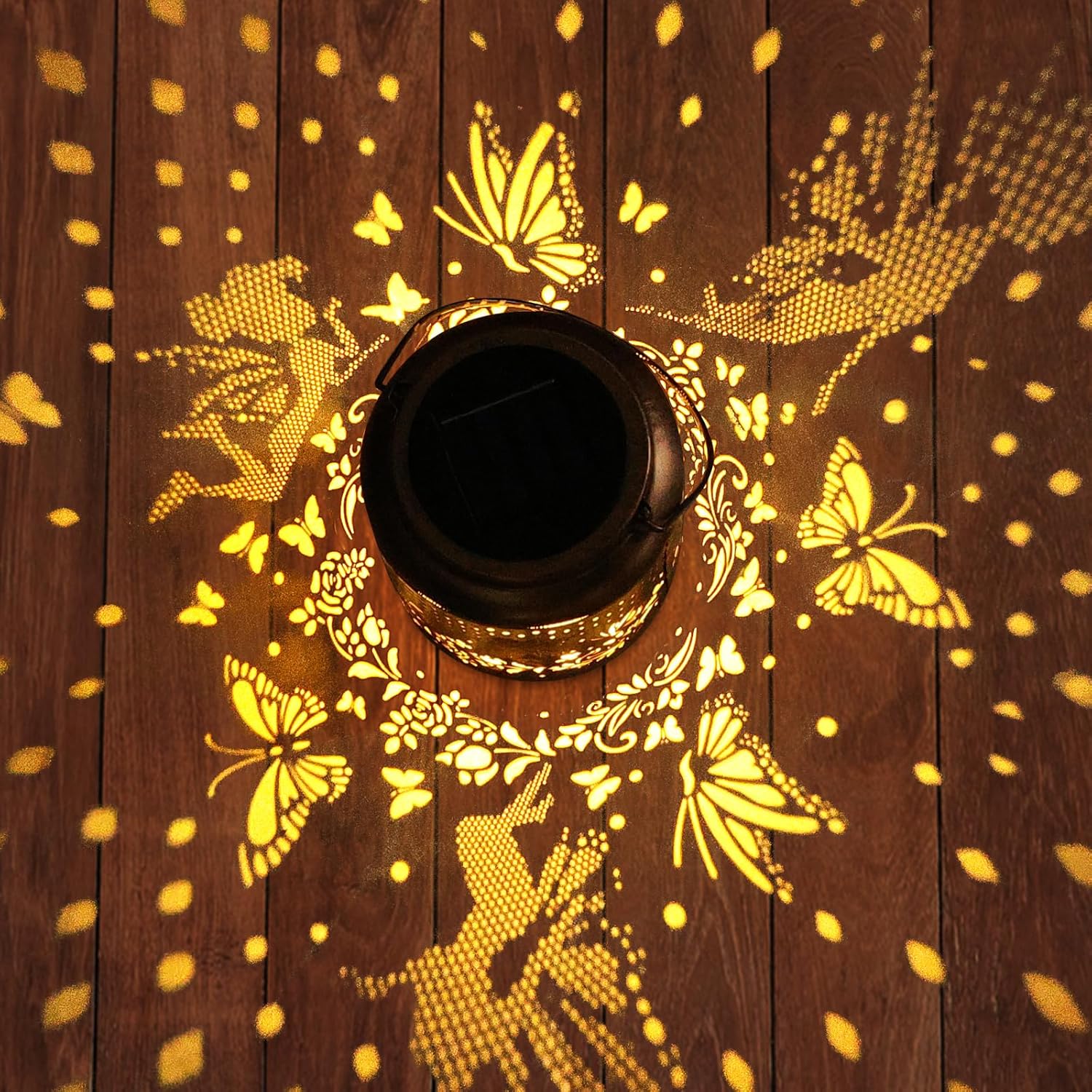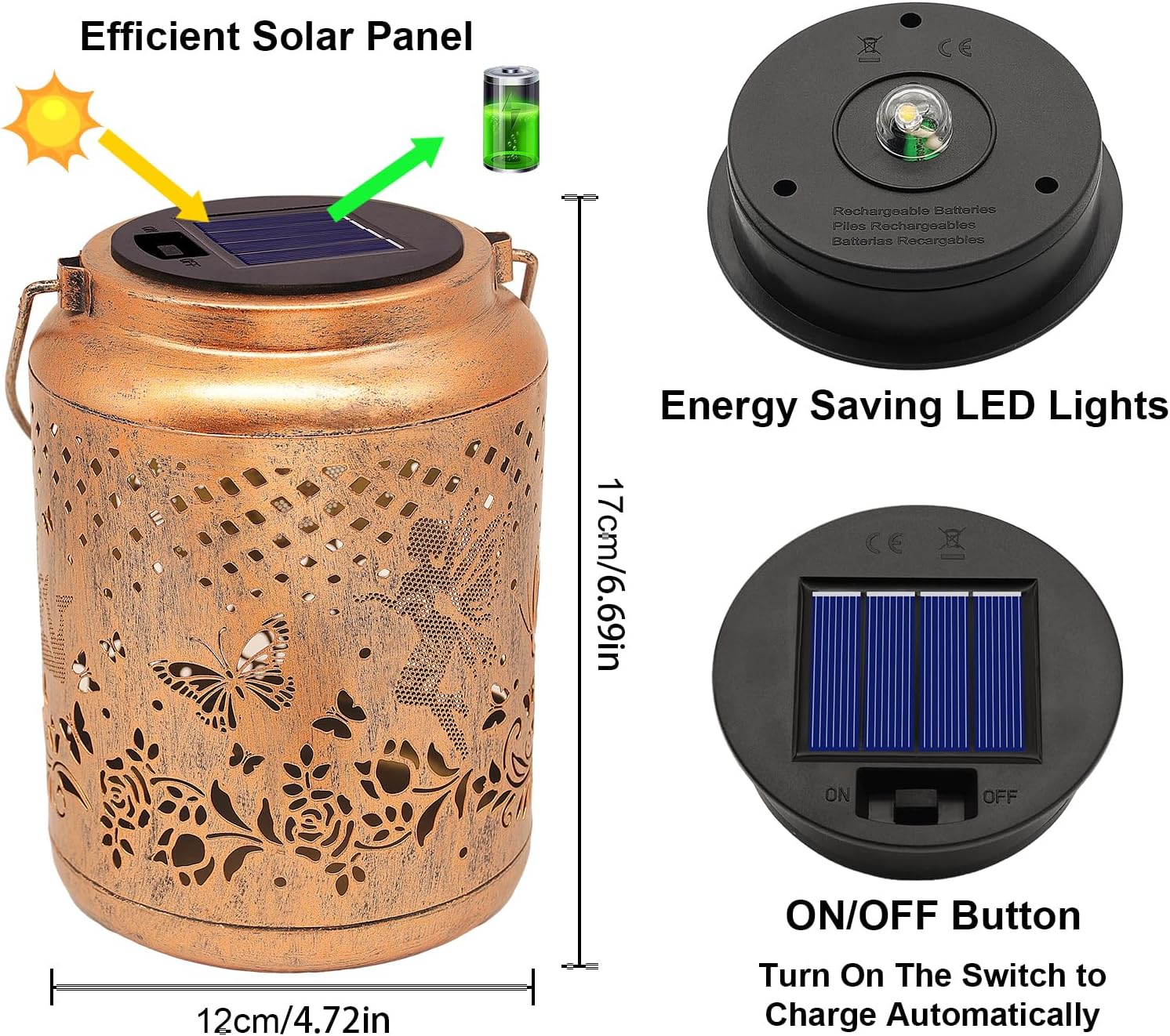 - Beautiful Solar Lanterns for a Cozy Garden - The antique bronze design and fairy butterfly pattern add such a charming touch to your garden. The lanterns cast a warm light at night and create such a peaceful atmosphere. Solar lanterns outdoor hanging lantern lights are a beautiful addition to any garden, yard, or patio space. Designed with a charming fairy butterfly metal decor, making them not only functional but also a stylish enhancement to your outdoor aesthetics.