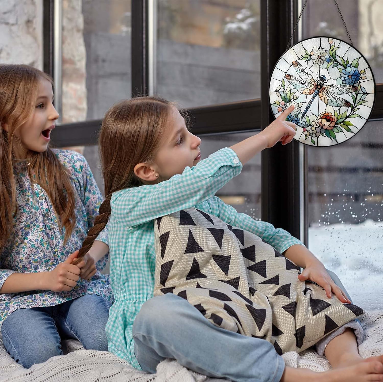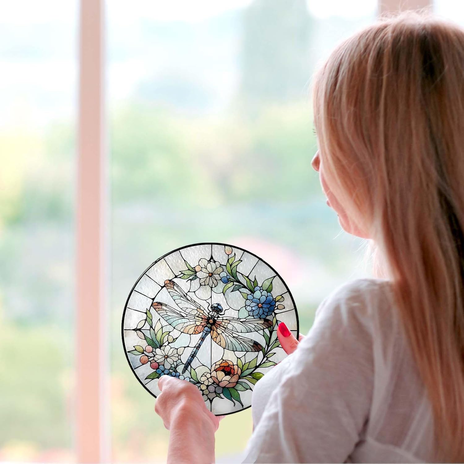 Dragonfly Sun Catcher Dragonfly Gifts for Women Stained Glass Window Hanging Sun Catchers Indoor Window Wall Decor Handmade SunCatcher Decoration for Garden Home Housewarming Gifts(6 * 6 inch)