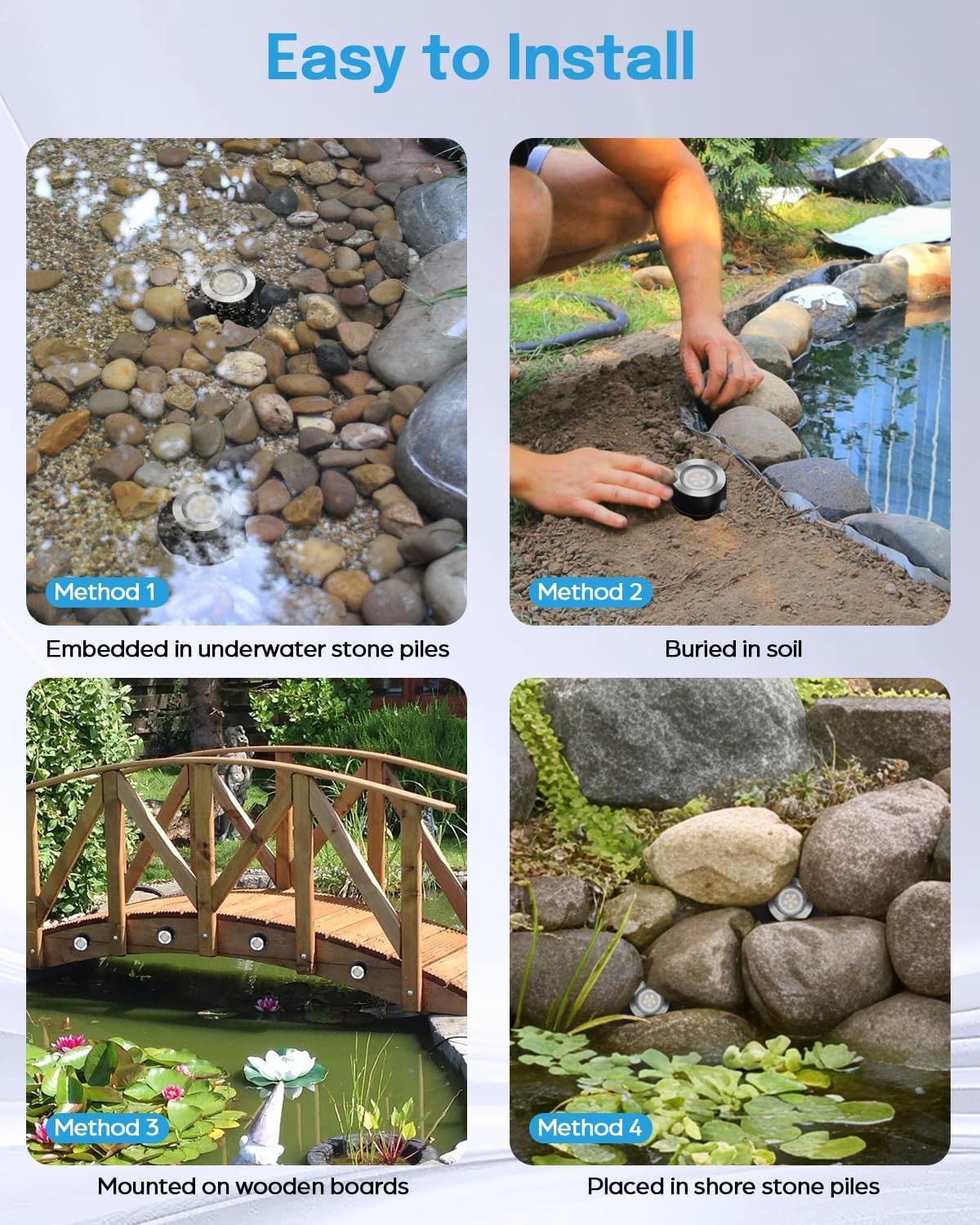 - WIDELY APPLICABLE - Fountain Lights Underwater Outdoor LED are powered by a 12V AC/DC power supply and are compatible with virtually any low voltage lighting system used for outdoor landscape lighting. Underwater lights can be widely used in pool waterfalls, outdoor ponds, fountains, streams, water statues, creeks, pond rocks, etc. We promise 12-month replacement warranty and lifetime after-sale support guarantee. buy with confidence.