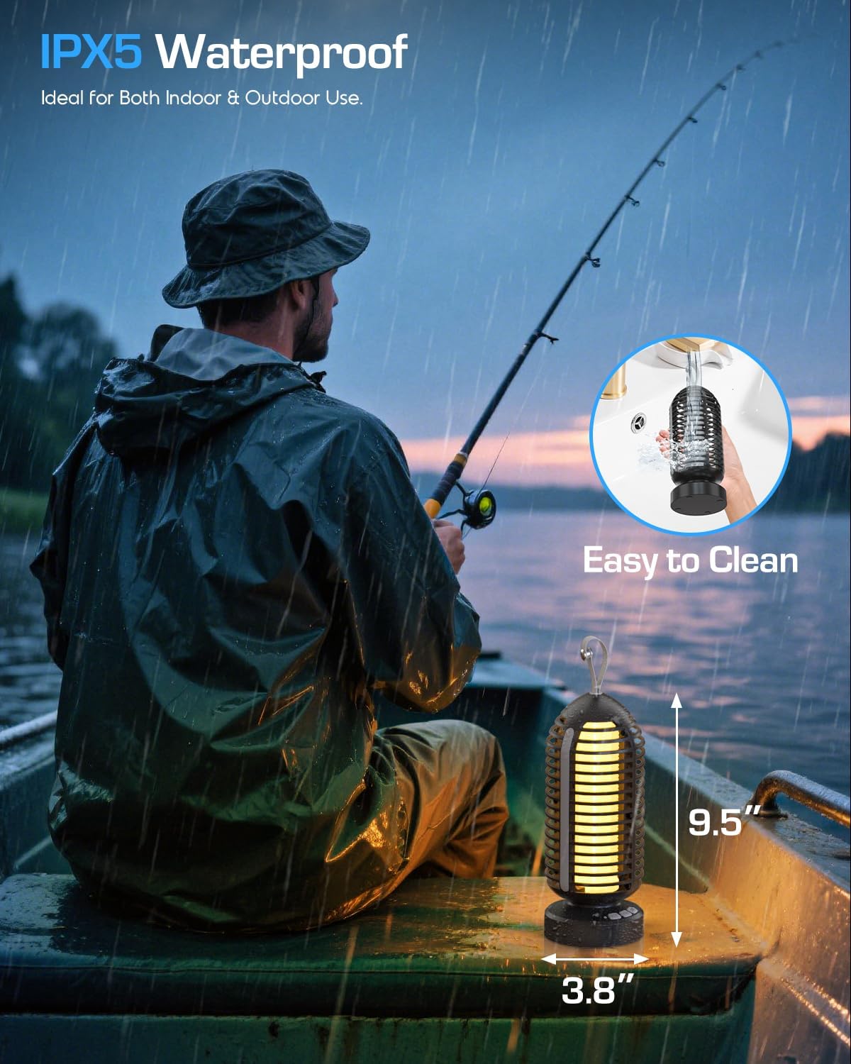 - IPX5 Waterproof & Easy to Clean: Built with an IPX5 waterproof rating, this portable mosquito zapper outdoor handles rainy conditions with ease for safe, reliable outdoor use. The bug zapper outdoor cordless features a magnetic hook for easy hanging or stable placement on flat surfaces. The small brush makes this fly killer easy to remove insects stuck to the grid. Note: Do not immerse in water. Whether indoors or outdoors, keeping bothersome insects at bay is effortlessly achievable.