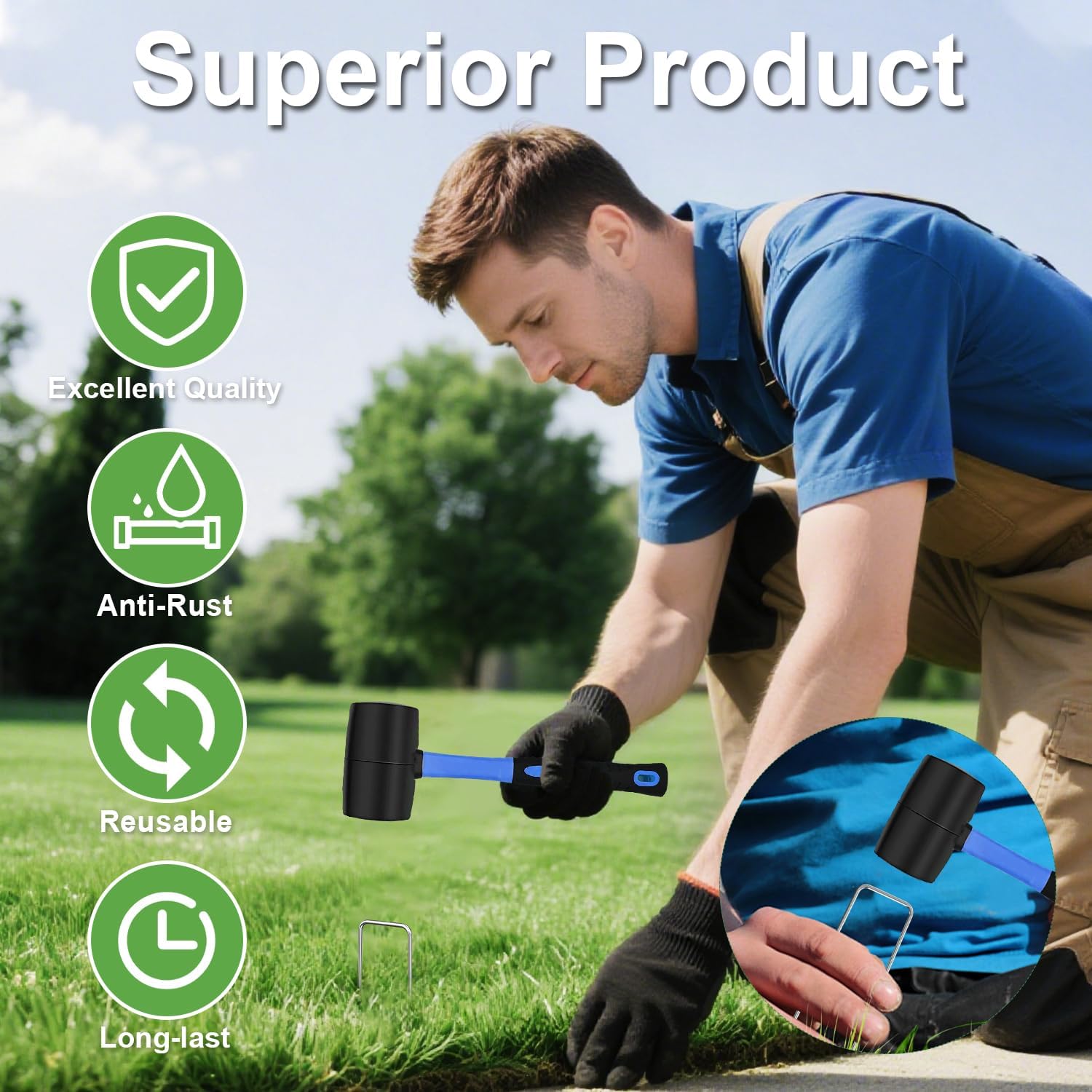 - RUST RESISTANT - Garden Staples Made of plastic coated steel pipe, not easy to rust, can be used for a long time, save your money in the long run. Note: This set includes 20 pcs of landscape staples and a small red hook.
