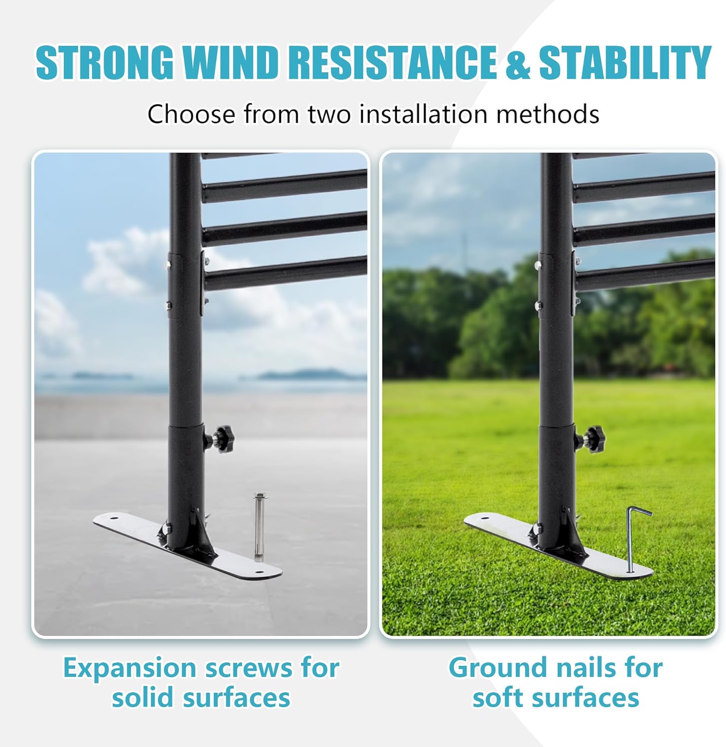 - Easy Installation: Each privacy fence screen comes with detailed installation instructions, smooth finished panels, easy-to-assemble plastic pipes, and accessories with caps and feet for versatile use on uneven or hard surfaces, allowing you to easily move it to your desired location. Featuring dual installation options with expansion screws for solid surfaces and ground nails for soft surfaces, ensuring secure placement. The thoughtful design also prevents scratches during use, and its lightweight structure ensures easy installation.