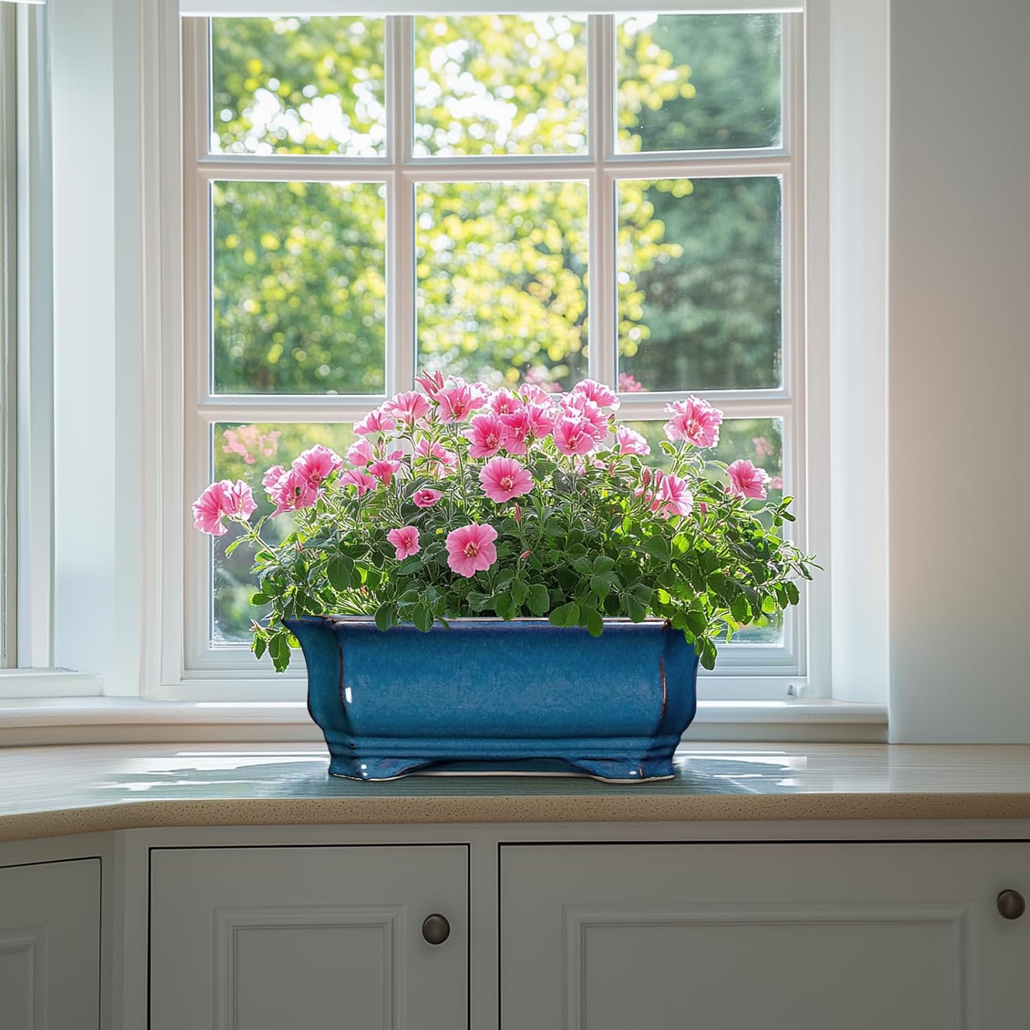 - Planter Design: Featuring a beautiful blue reactive glaze finish and elegant rectangluar appearance, this bonsai pots combines practicality with beauty, suitable for table, desk, windowsill, shelves, living room, bedroom, bathroom, porch, study, office, patio, balcony, zen garden, any indoor or outdoor space