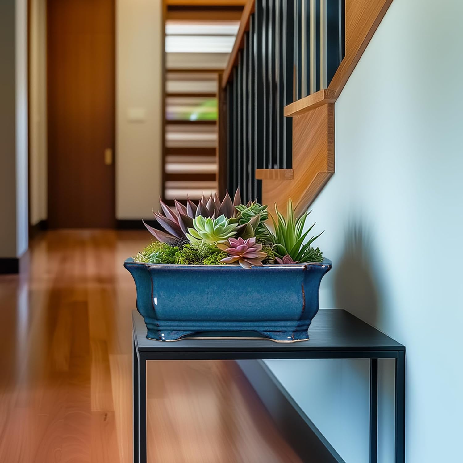 - Planter Design: Featuring a beautiful blue reactive glaze finish and elegant rectangluar appearance, this bonsai pots combines practicality with beauty, suitable for table, desk, windowsill, shelves, living room, bedroom, bathroom, porch, study, office, patio, balcony, zen garden, any indoor or outdoor space
