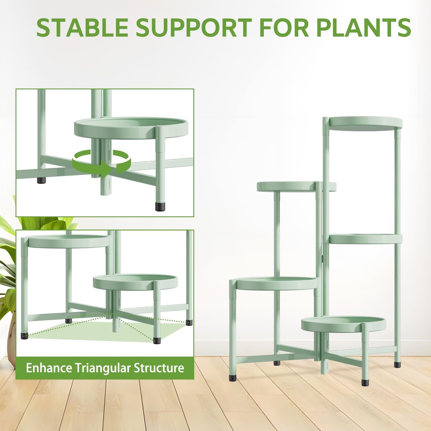 iDavosic.ly 5 Tier Large Plant Stand Indoor, 10 Inch Wide Corner Tall Metal Plant Stands Outdoor for Multiple Plants, Folding Tiered Flower Display Holder Rack Shelf, Light Green