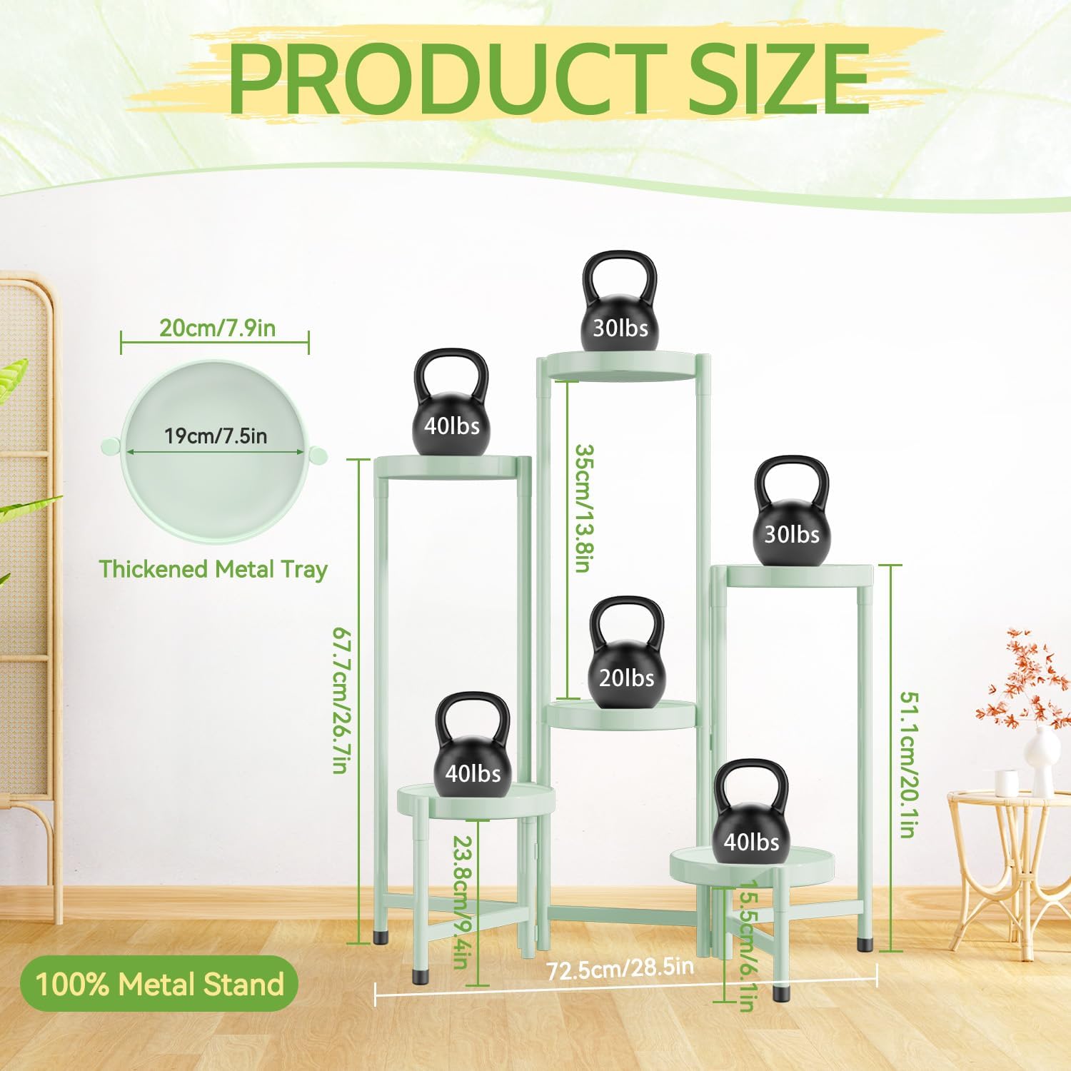 - 7.9-Inch Wide Trays with Rim: This tall plant stand features 7.9-inch round trays, suitable for pots up to 7.5 inches wide. Each tray is designed with raised edges that guard against spills and tipping, keeping your plants safe and steady