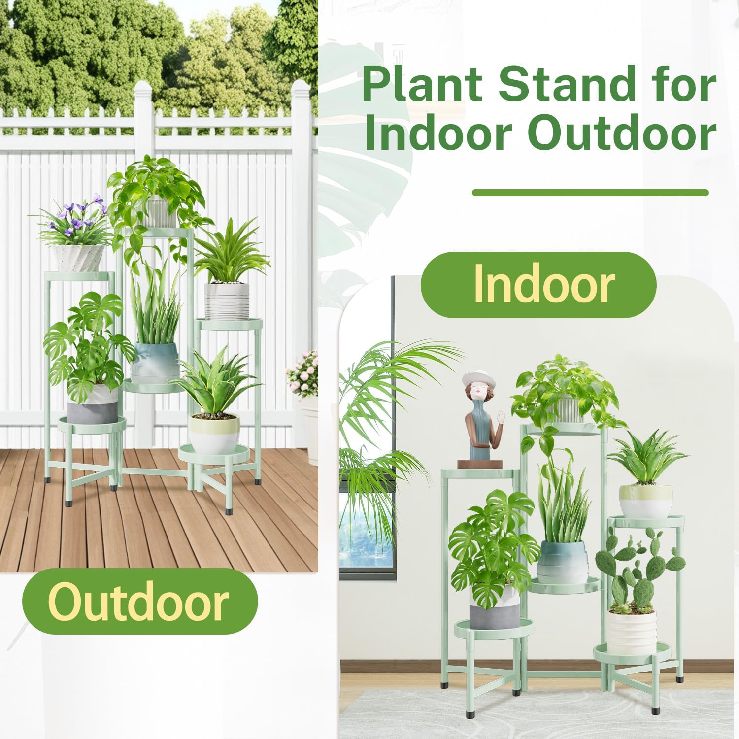 - Space-Saving Adjustable Design: The plant stand outdoor has the fixed center pole while outer legs rotate smoothly, letting you shape it to fit corners or straight spaces. It provides a flexible display that adapts easily and folds for convenient storage