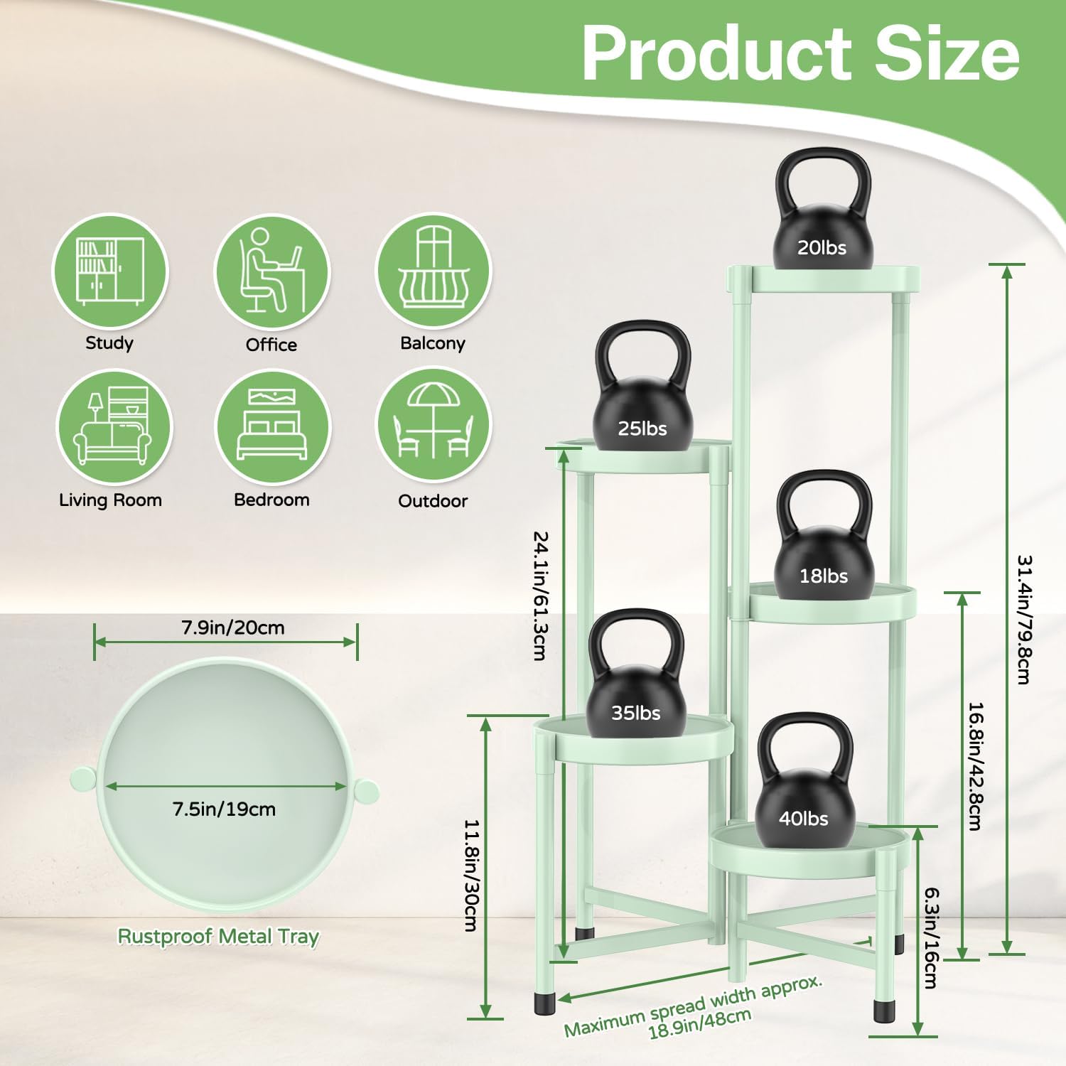 - 7.9-Inch Wide Trays with Rim: This tall plant stand features 7.9-inch round trays, suitable for pots up to 7.5 inches wide. Each tray is designed with raised edges that guard against spills and tipping, keeping your plants safe and steady
