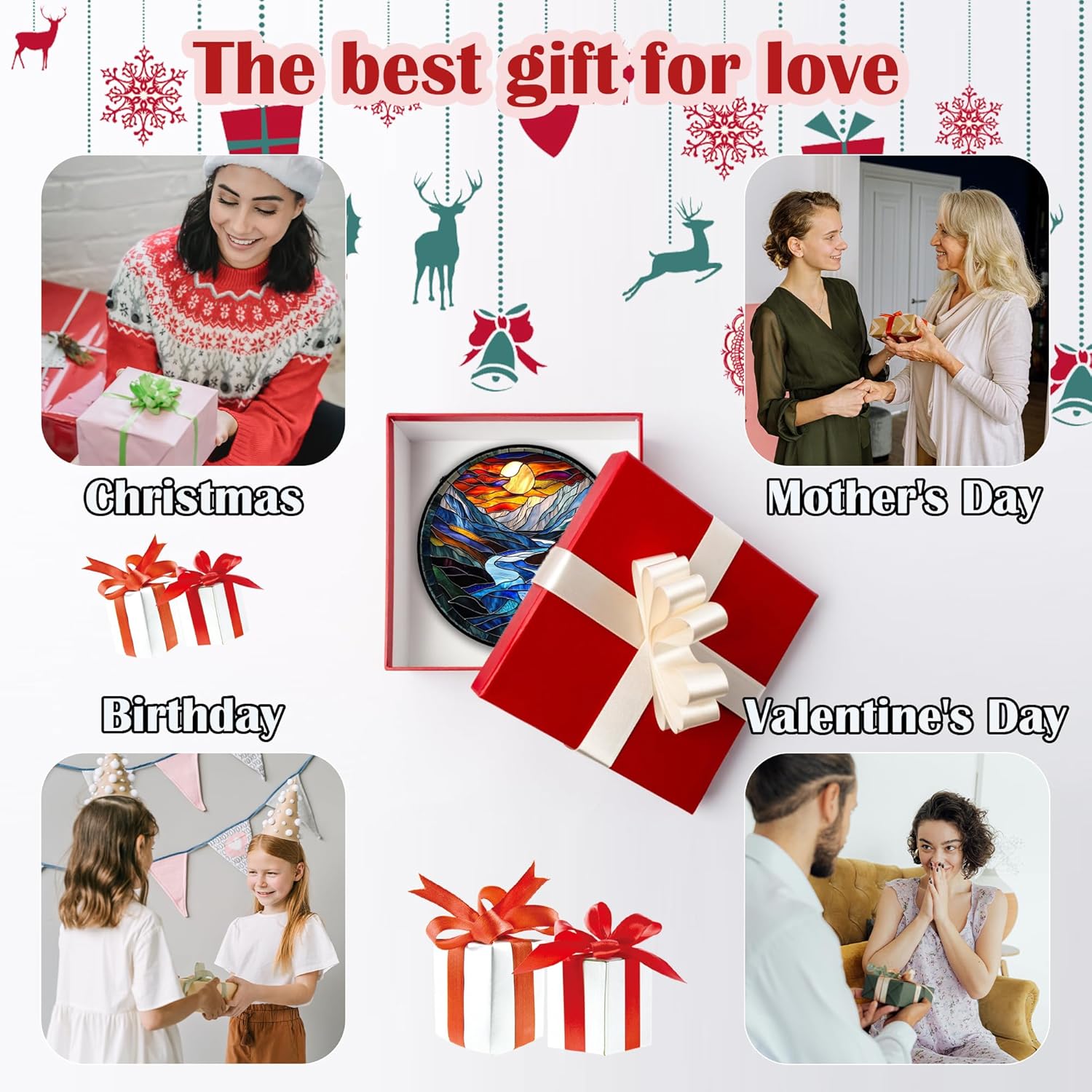Stained Glass Window Hanging, Canyon Mountains Sunset View Sun Catcher for Window Home Decor Landscape Suncatcher Mother's Day Birthday Gifts for Women Men Mom and Nana 9.8 in