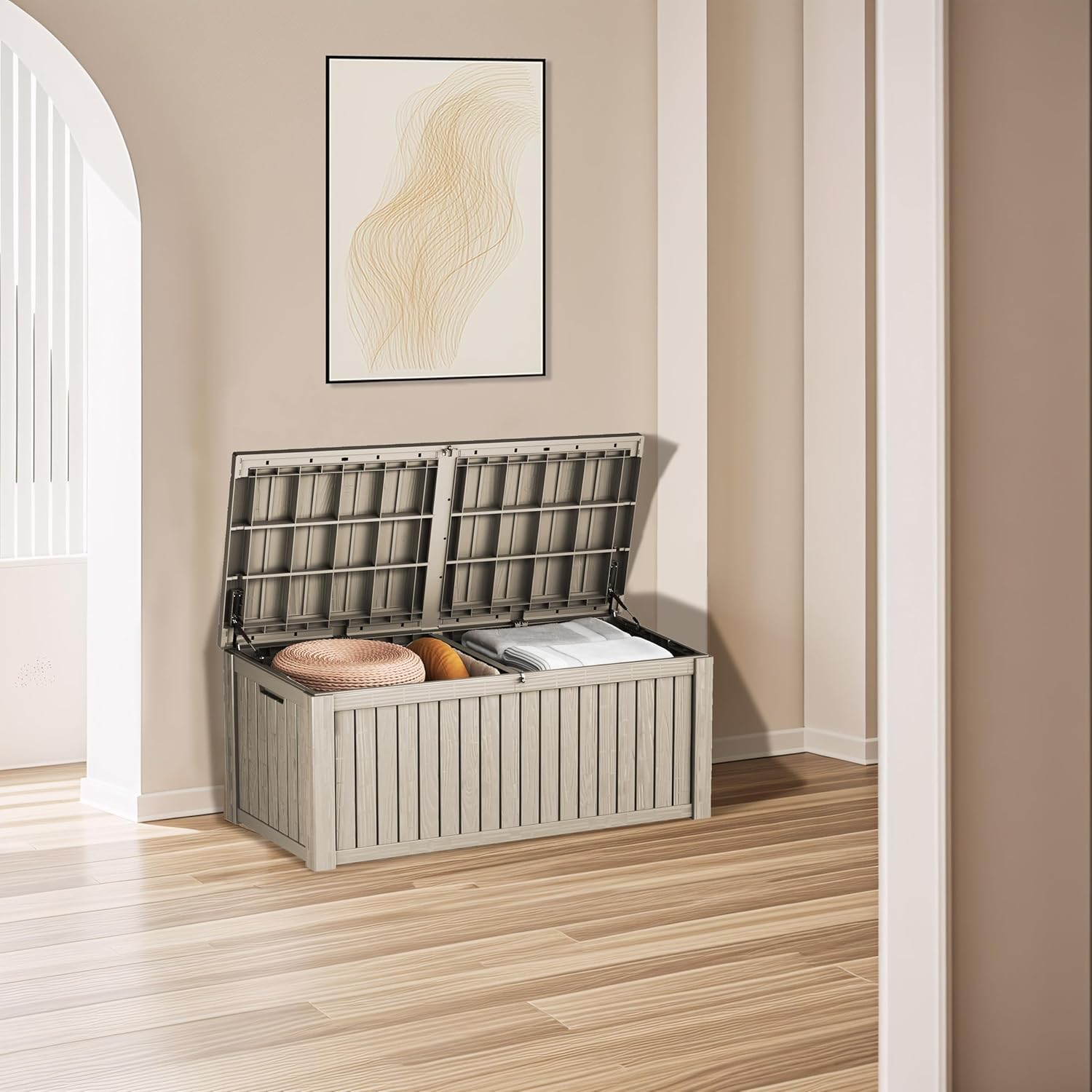 - Large Capacity: This 180-gallon deck box offers ample storage space for your outdoor accessories, and it has a 1200-pound weight capacity and can be used as a separate patio seat or indoor table.