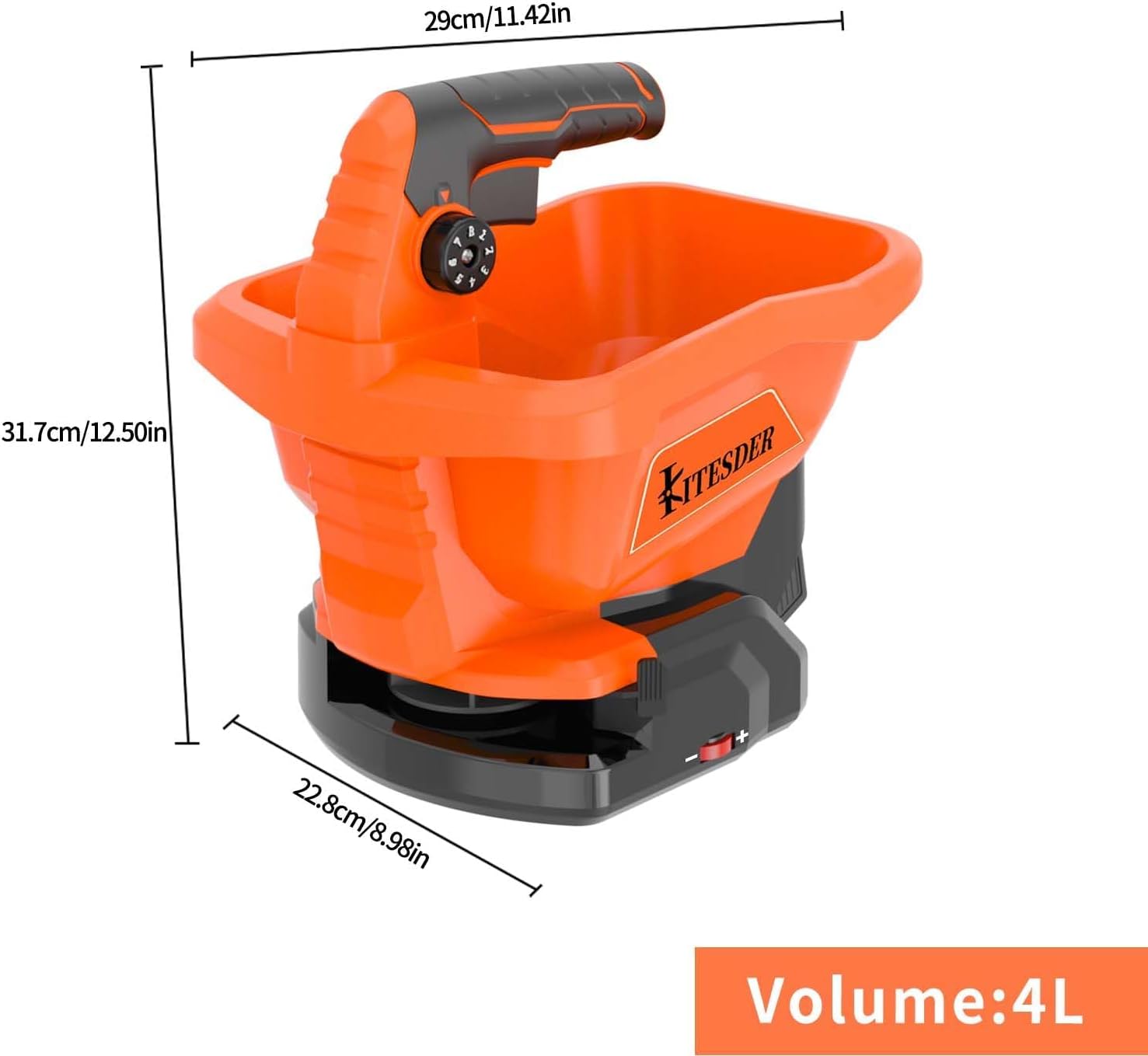 - 【High Capacity and Portability】With a 4L capacity and ergonomic design, this handheld broadcast spreader ensures convenience while carrying and using it, perfect for small or large lawns.