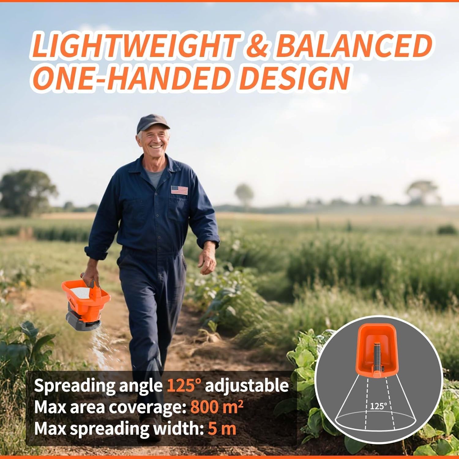 - 【8-Level Settings & 6 Seeding Angles for Precision】This grass seed spreader features 8 adjustable settings: Levels 1-3 are ideal for fine grass seeds, Levels 4-6 for moderate fertilizers, and Levels 7-8 for heavy rock salts. It also offers 6 seeding angles with a maximum of 125°, ensuring precise spreading.