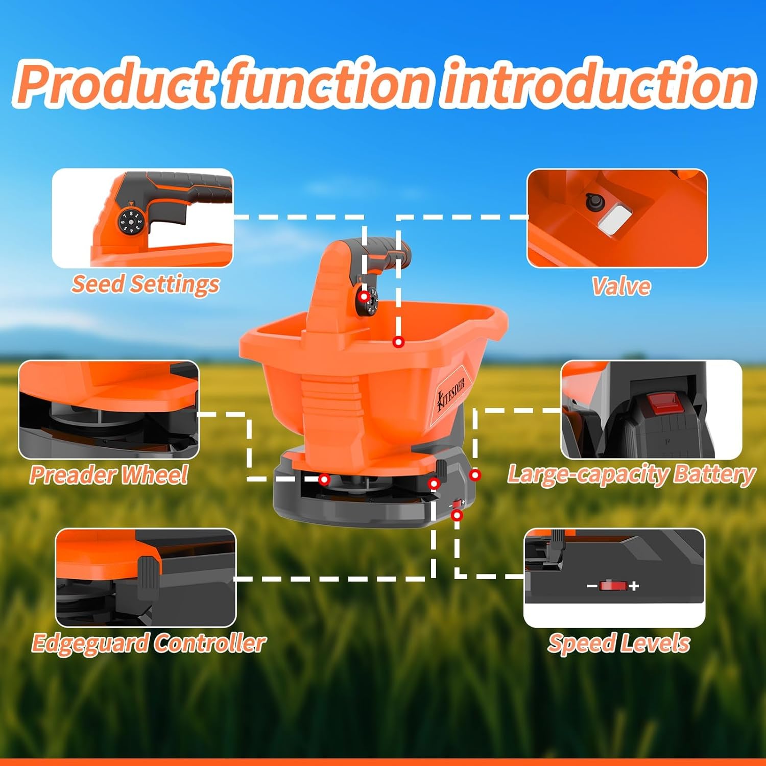 - 【Versatile Usage】The KITESDER grass seed spreader is designed to sprinkle salt, feed chickens and ducks, sow seeds, and distribute fertilizer evenly, making it an all-in-one gardening tool for your lawn care needs.