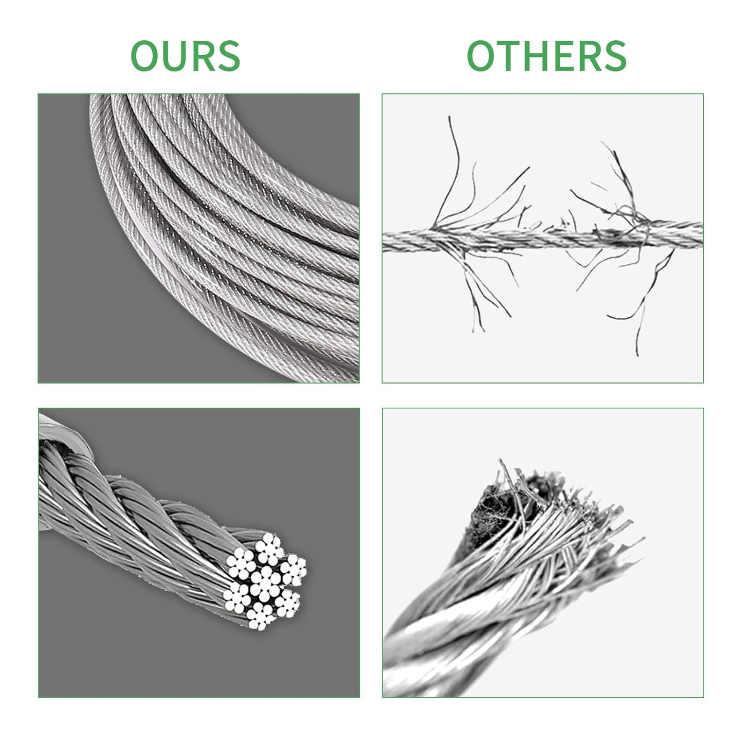 - 【Superior strength and durability】: The wire rope is made of 304 stainless steel, the wire cable structure is 7X7, with nylon coating on the surface to make it smooth, it is also insulated, rust-proof, corrosion-resistant, and withstands any harsh weather conditions such as strong sunlight and heavy rain.