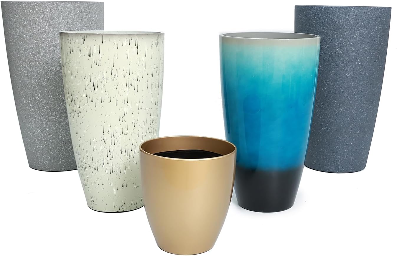 24,21,11 Inch Large Plastic Planters with Drainage Hole and Saucer - Set of 3 Tall Plant Pots Indoor Flower Pot Tall Round Planters Outdoor Large Tall Planter