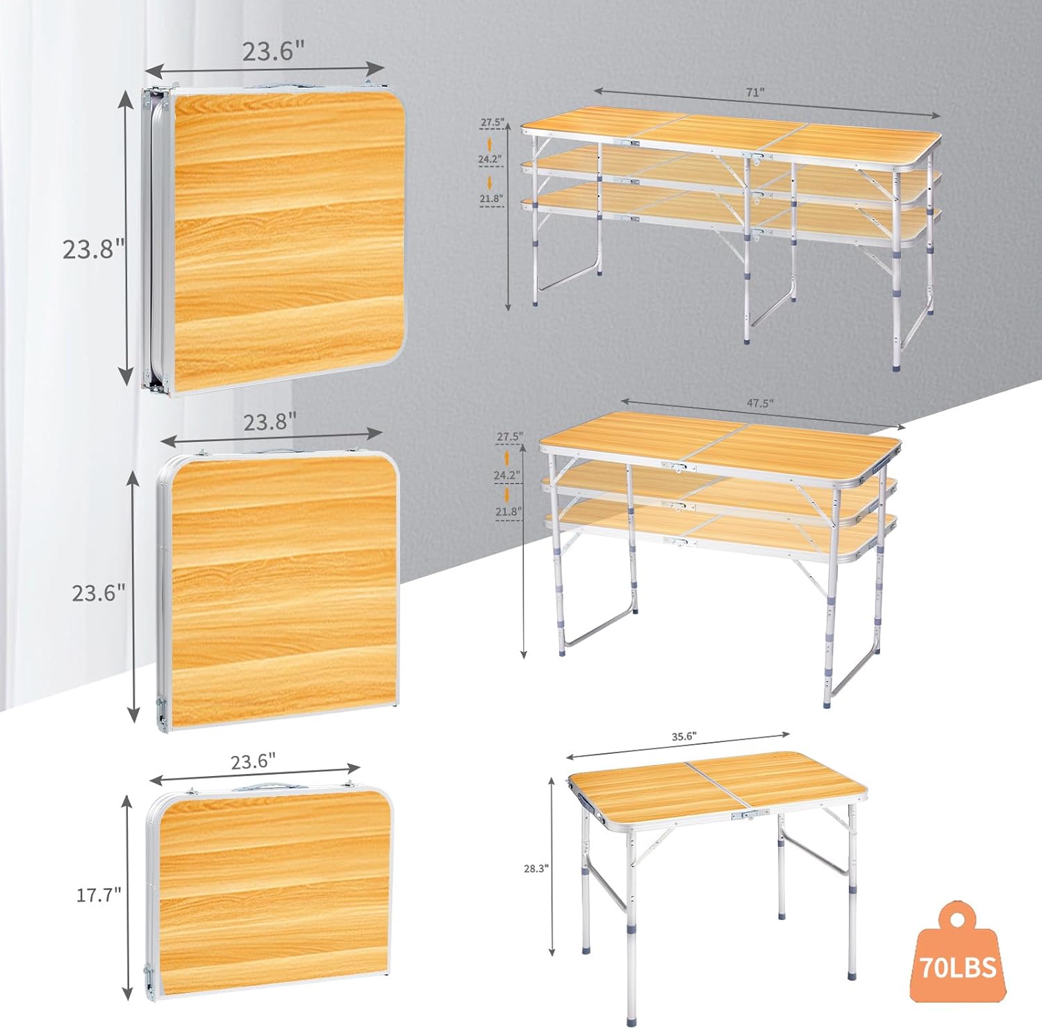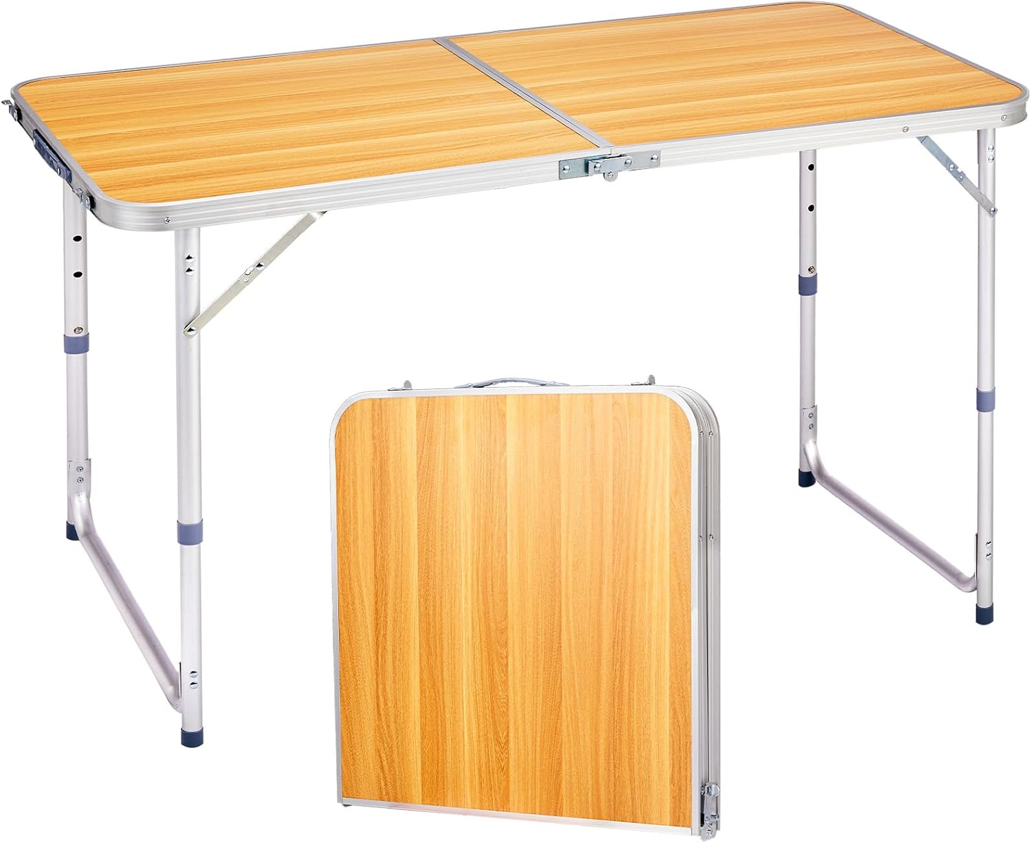4.0 Ft Folding Portable Camping Table with Three Adjustable Heights, RV Tables for Inside a Camper, Outdoor, BBQ, Dining, Picnic, Beach, Garden, Party, Yellow