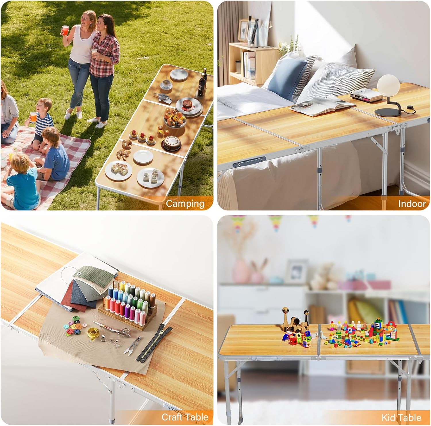 - MULTIPURPOSE TABLE: The foldable table is universal . Perfect for outdoor and indoor activities, camping, picnic, hiking, fishing, Dining, BBQ, party, travel, gathering, concert, sports, event.