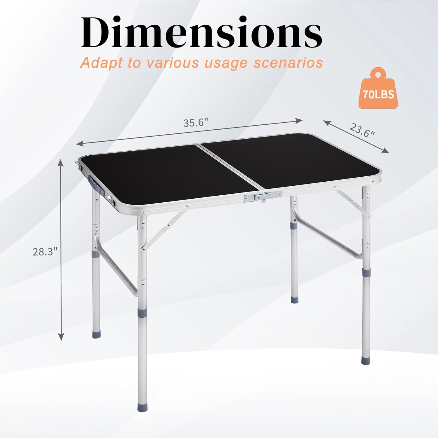 3.0 Ft Folding Portable Camping Table with Adjustable Height Legs, RV Dining Tables, Grill, DJ, BBQ, Dining, Picnic, Cooking, Beach, Garden, Black