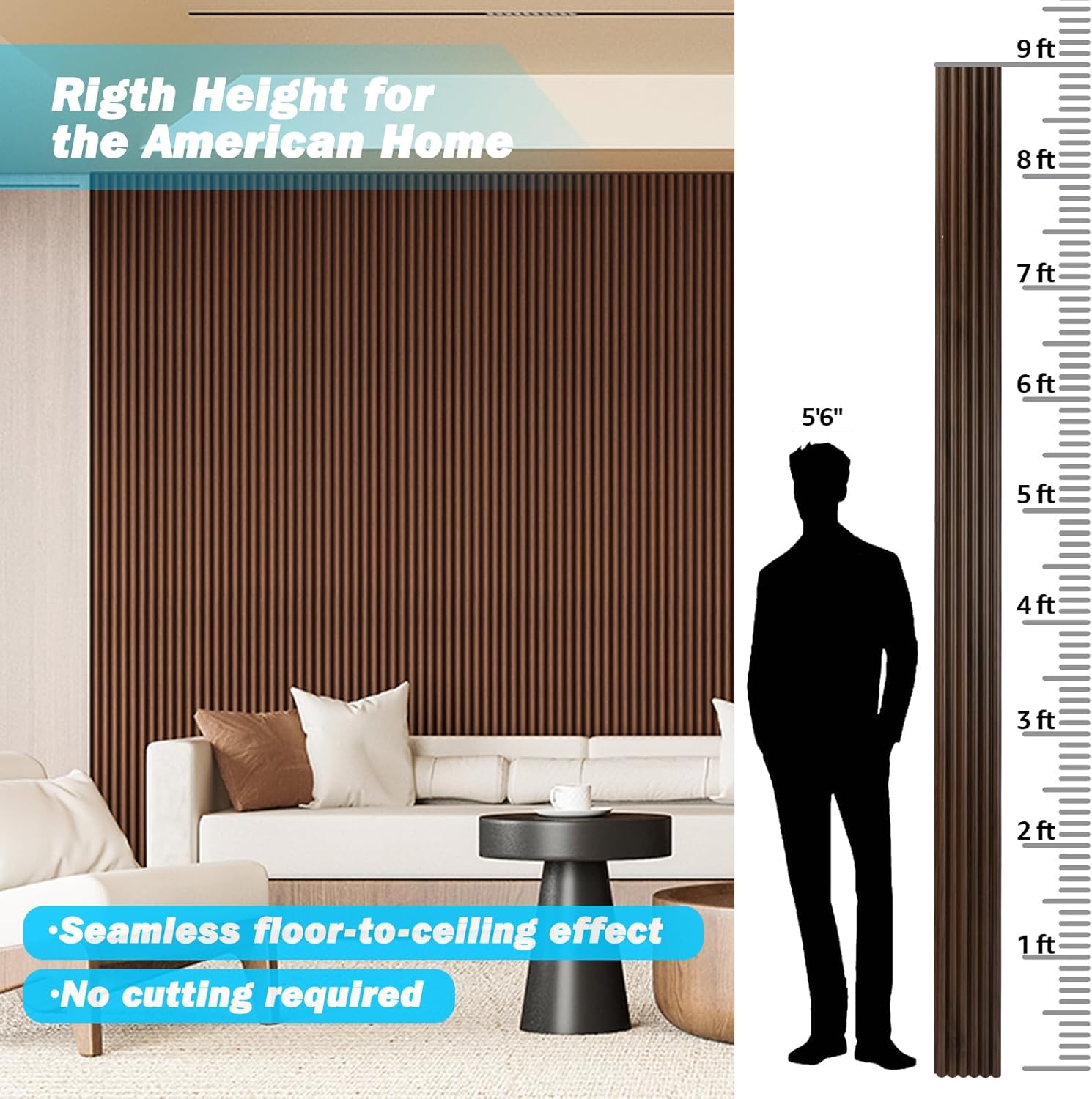 Art3d Fluted Wood Panel for Wall and Ceiling, Beaded Accent molding for Home Decoration, Pack of 4pcs + 1pc End-Trim, Size 108 x 5.7in.- Beaded Walnut