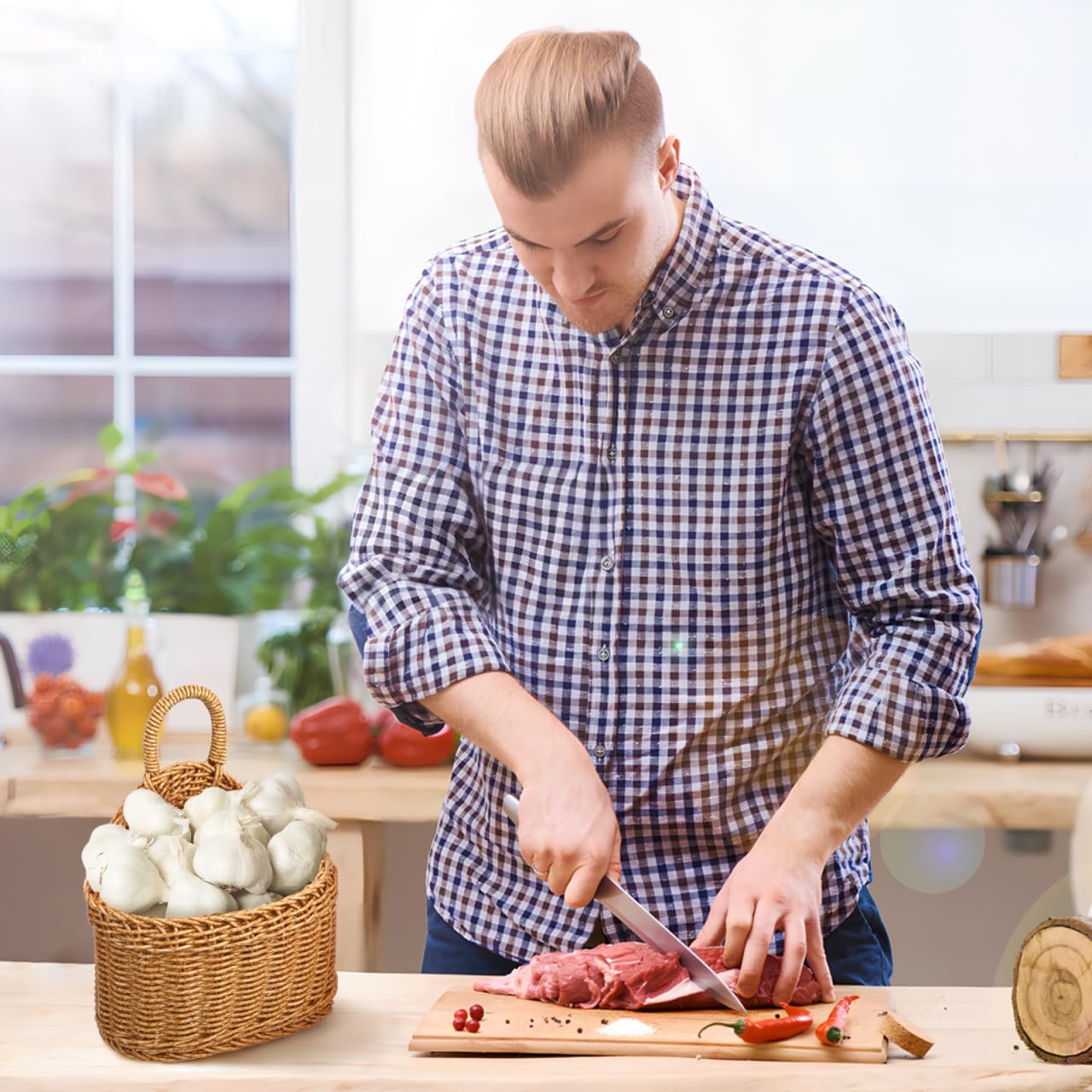 - GARLIC KEEPER BASKET: This wall baskets can store vegetables, ginger, garlic, eggs, flowers and other items in the kitchen. And can be hung on the wall for your storage, making your kitchen change To be more tidy