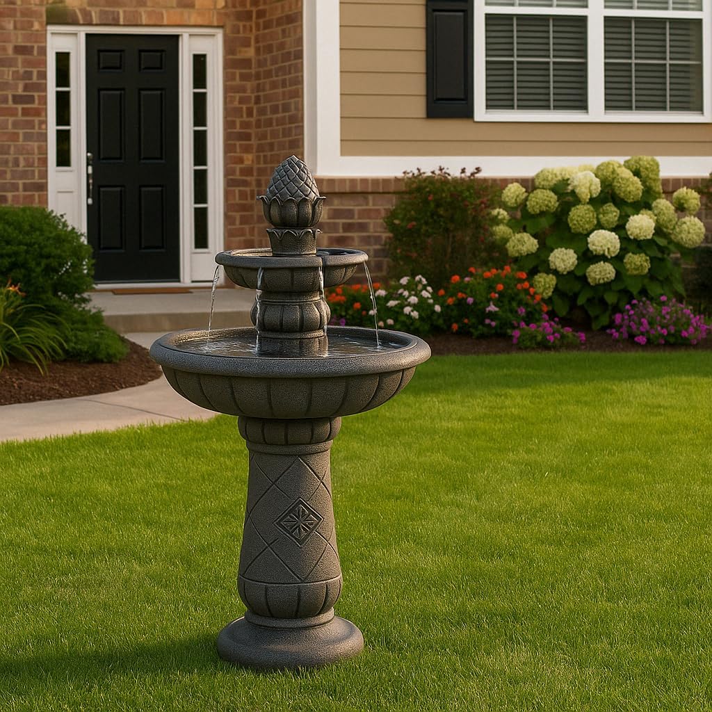 - RELAXING OUTDOOR WATER FEATURE: Elegant pineapple-style tiered fountain creates a peaceful waterfall effect that enhances your garden, patio, backyard, or landscaping with calming ambiance.