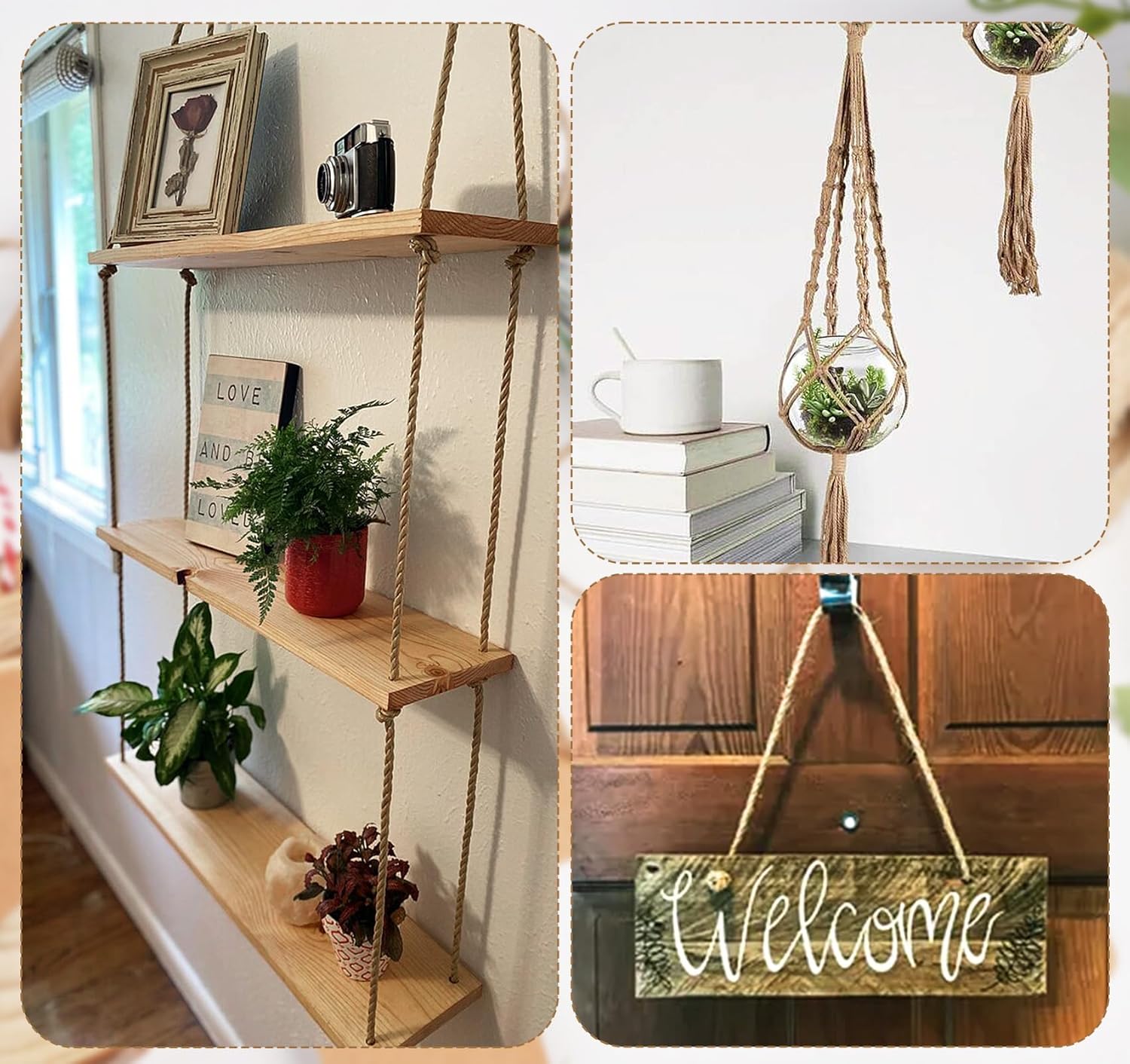 - Applications - Twine for gardening Wall hangings, photo wall frames, jute rope bouquets and wreaths, lampshades and lighting decorations, table and window displays.