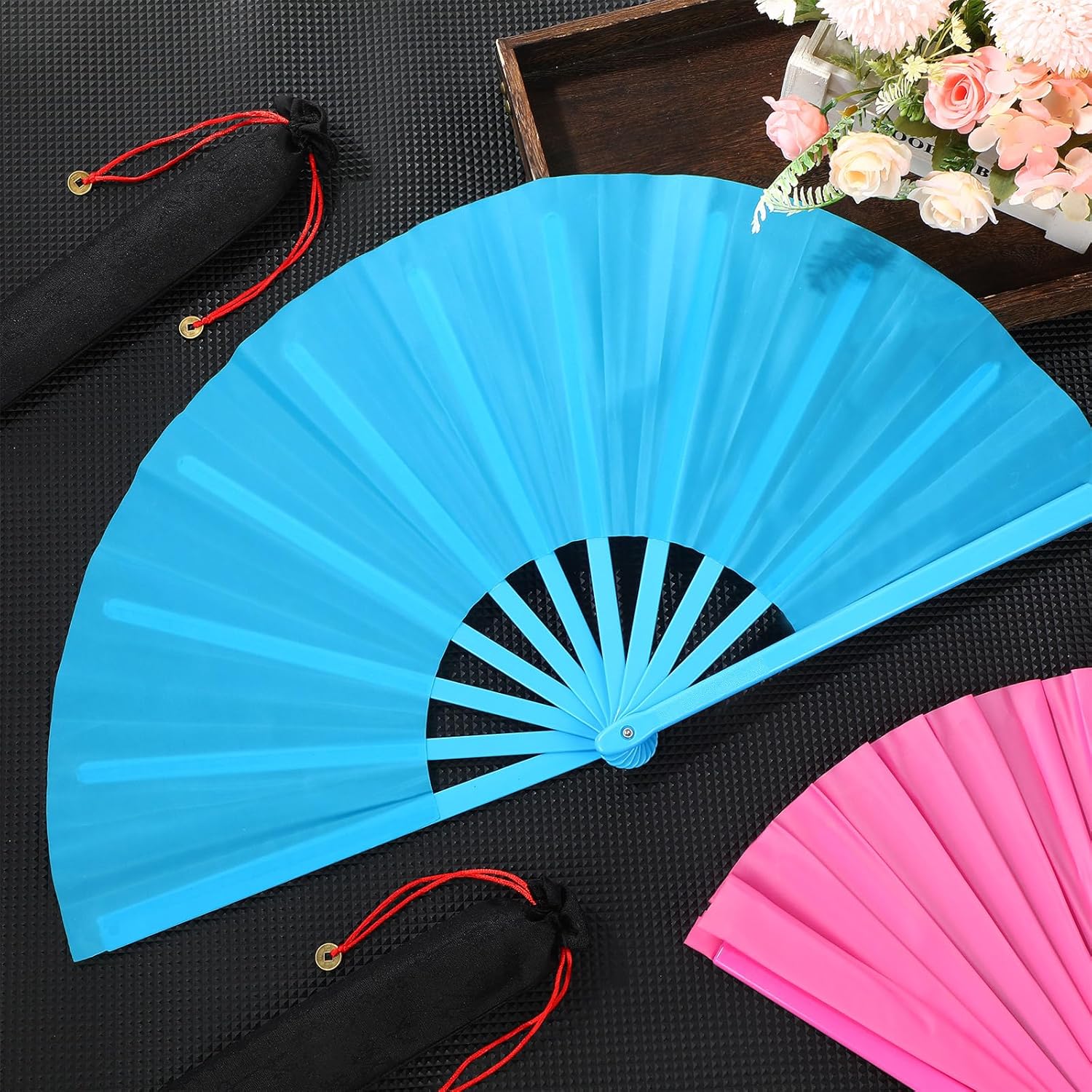 Maitys 2 Packs Large Clap Fans for Line Dancing Large Chinese Folding Hand Fans for Men and Women, Festival, Tai Ji, Kungfu, Martial Art, Gifts (Rose Red and Sky Blue)