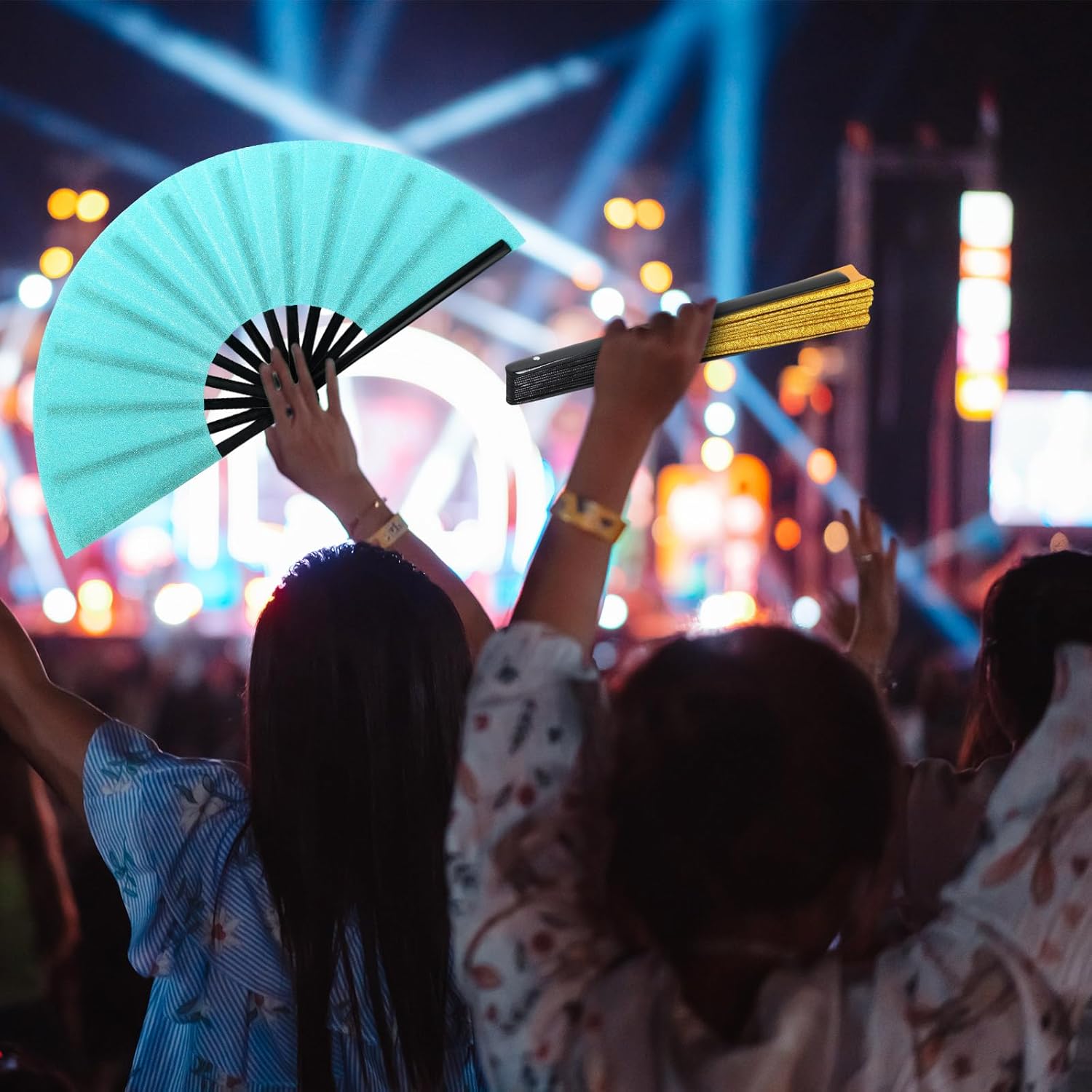 - Gorgeous Design: just open the large rave fan with a flick of the wrist, loud sound when turned on at high speed, easy for you to open and close smoothly
