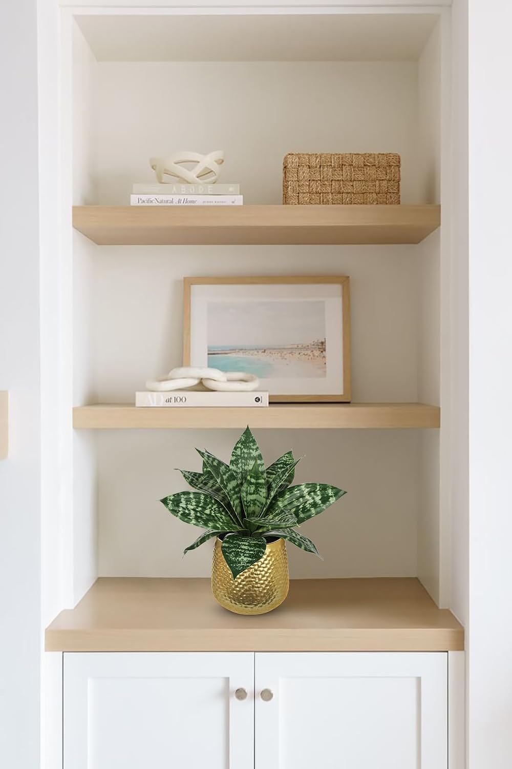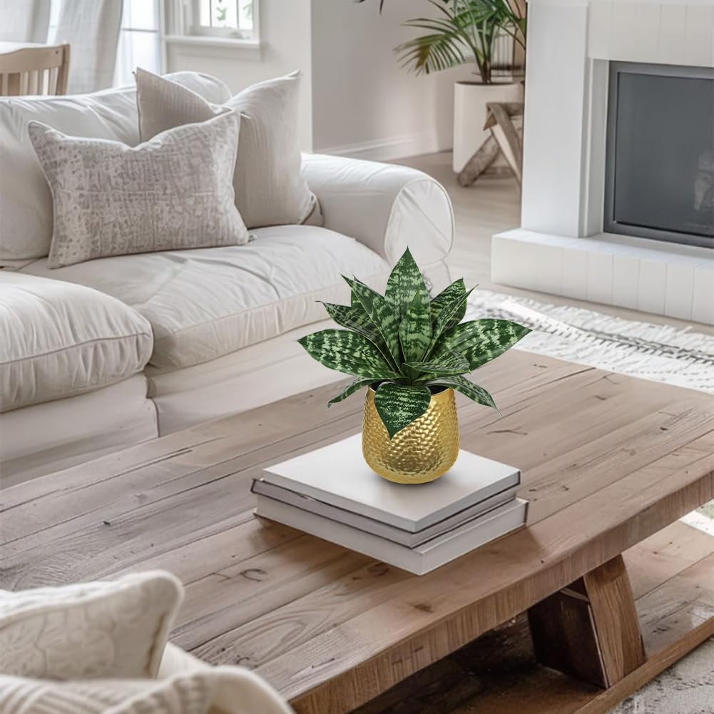 - Perfect Size: Faux snake plant in gold pots total height: 9", golden metal pot: 2.4 "W x 3.9 "H; Please read the dimensions carefully. Succulent agave plants artificial will easily catch you eyes, bring your home a vibrant sense of greenery