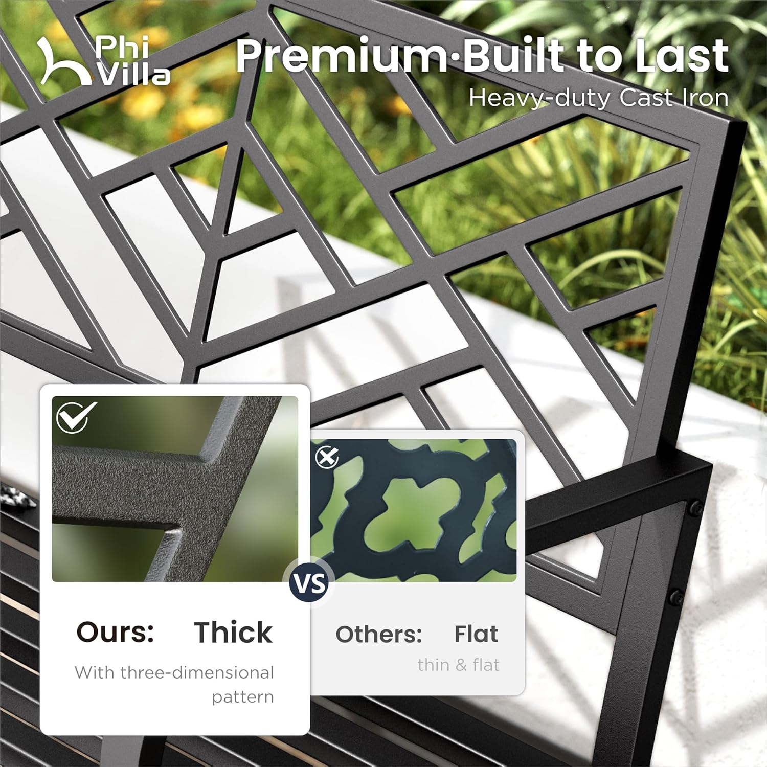 - 【Sturdy and Rust-Resistant】The Garden Bench is treated with e-coating layer and rust-resistant finish, smooth and weather resistant. This outdoor bench is made of cast iron backrest and metal frame, which is stable and sturdy for long-time use at outside.