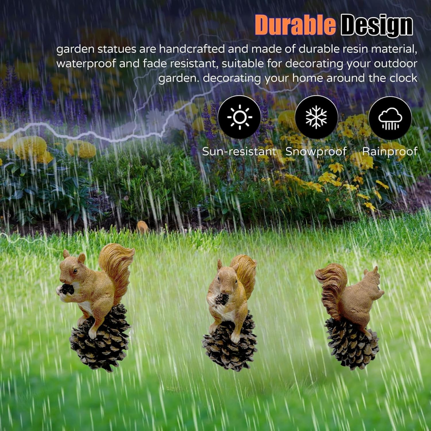 - Low Maintenance Accent – Simply wipe clean when needed—no upkeep required to keep this squirrel figurine looking fresh in your outdoor oasis.