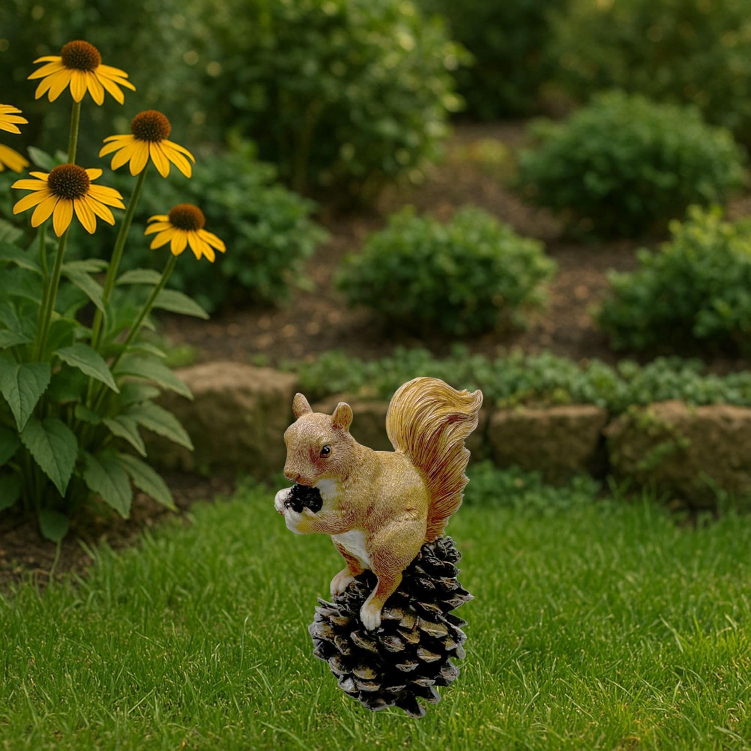 - Adorable Garden Accent: 6-inch tall polyresin squirrel on pinecone statue brings charming wildlife detail to your outdoor spaces.