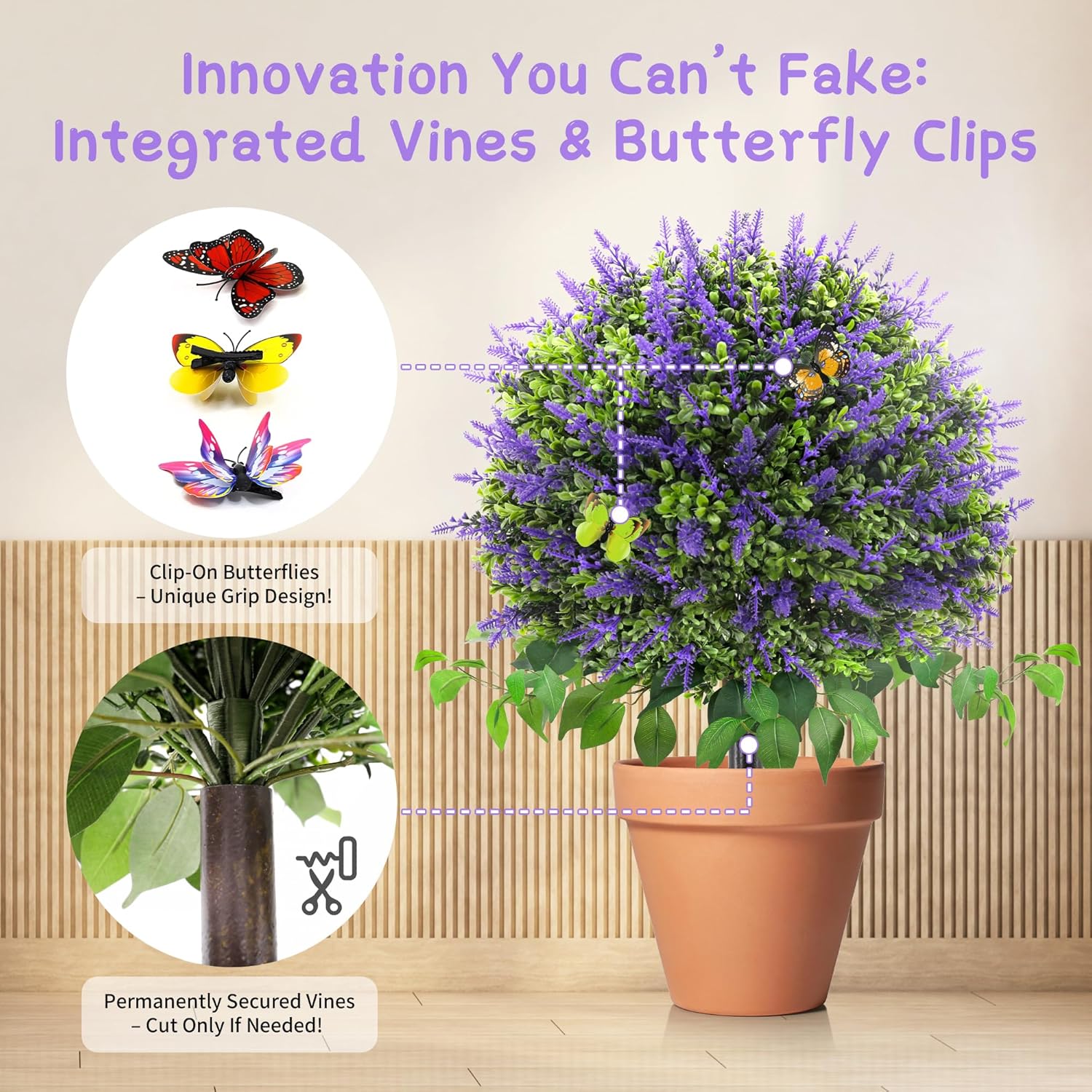- 【Exclusive Nature-Inspired Design】 Stand out with TONAHUTU 28" UV-resistant faux topiary, the ONLY fake lavender plants featuring lifelike faux vines and delicate fake butterfly ornaments. Crafted with premium silk foliage and reinforced polyethylene stems, this realistic lavender boxwood artificial plants outdoor mimics natural textures while resisting fading for 5+ years in harsh sunlight