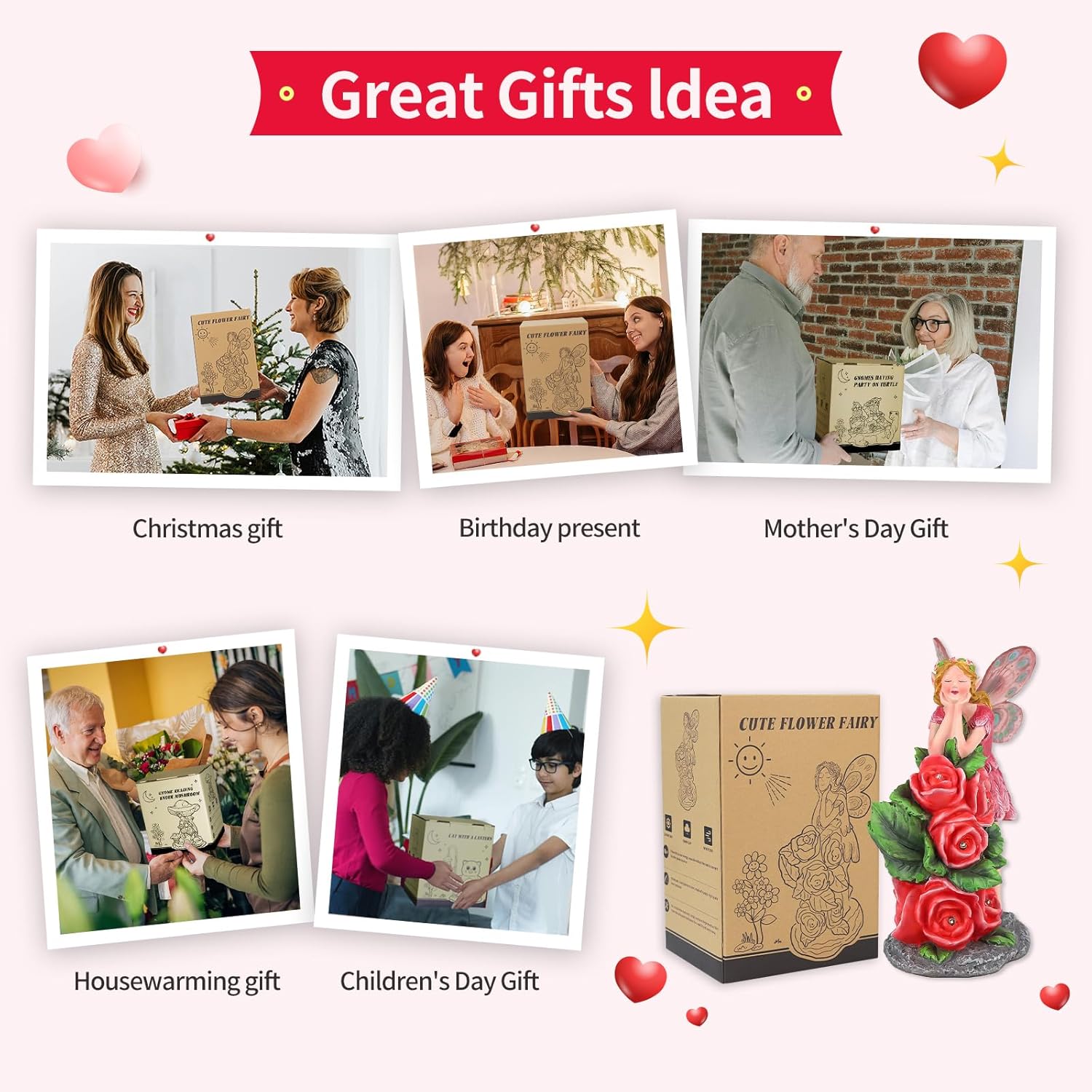 - Great Gift For Any Occasion: The uniquely designed solar powered "Cute Flower Fairy" statue is not only the best gift for birthdays, Christmas, Mother's Day, Father's Day, New Year, Thanksgiving, Easter, Valentine's Day, but also the best gift for any occasion. It can be given to Flower Fairy lovers, gardening enthusiasts, lovers, husbands, wives, mothers, fathers, sons, and daughters.