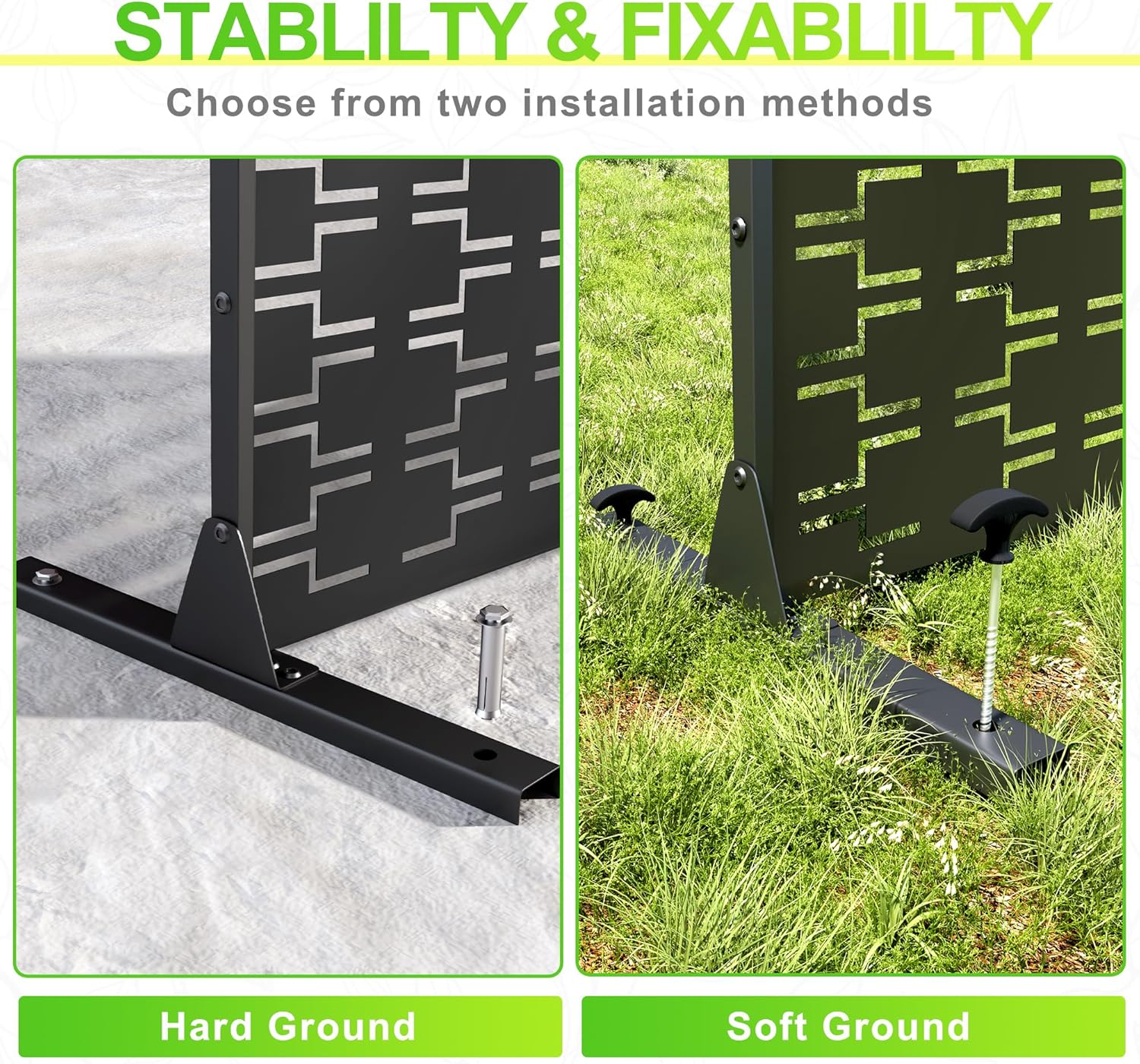 - 【Robust Metal Build】The metal privacy screen boasts a robust construction crafted from high-quality galvanized steel. Designed to endure the rigors of outdoor elements, its sturdy build guarantees prolonged durability.