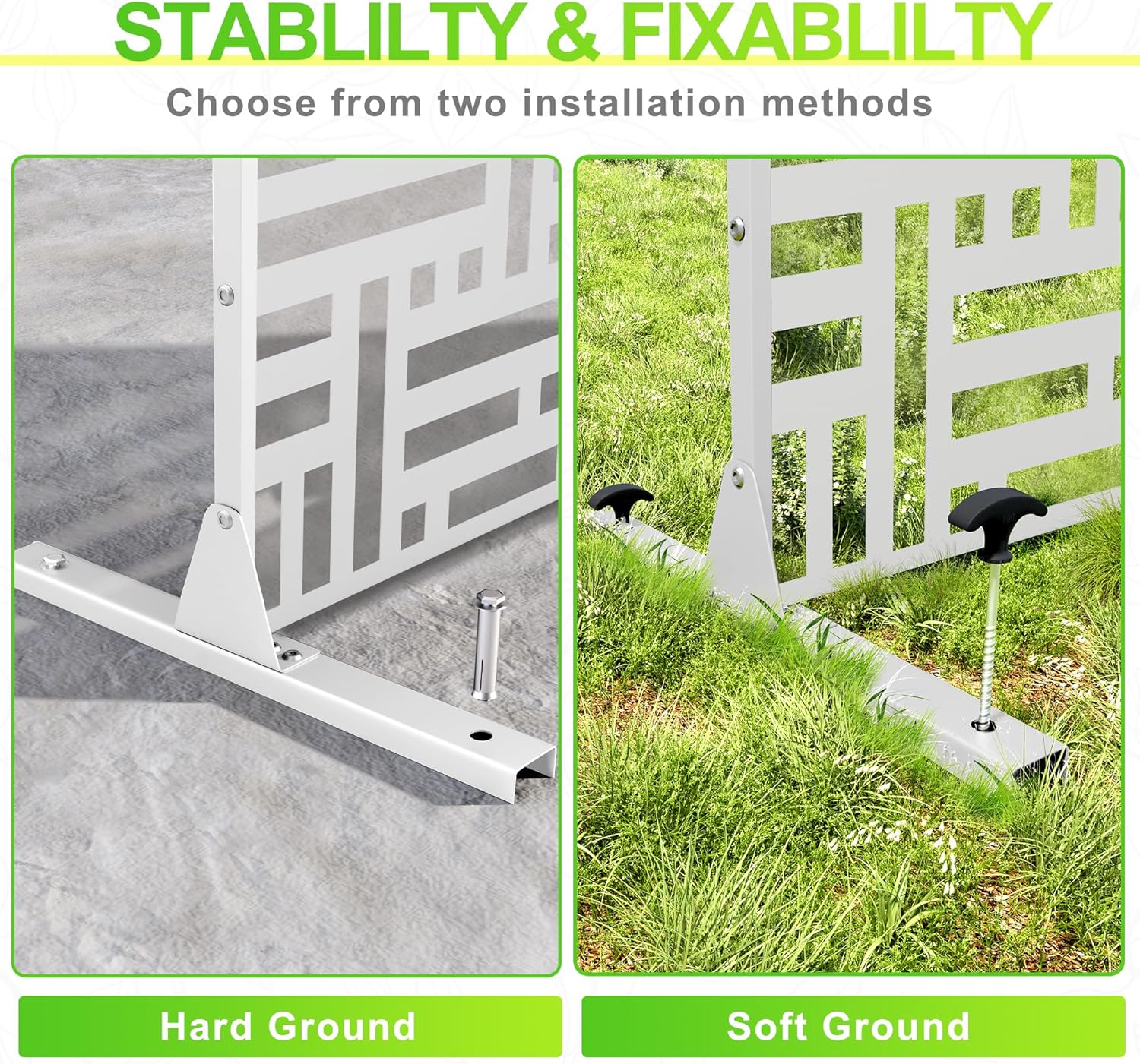 - 【Robust Metal Build】The metal privacy screen boasts a robust construction crafted from high-quality galvanized steel. Designed to endure the rigors of outdoor elements, its sturdy build guarantees prolonged durability.