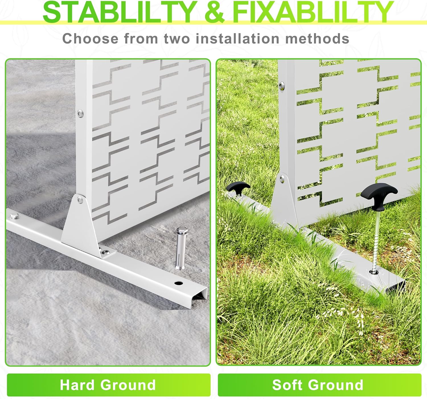 - 【Robust Metal Build】The metal privacy screen boasts a robust construction crafted from high-quality galvanized steel. Designed to endure the rigors of outdoor elements, its sturdy build guarantees prolonged durability.