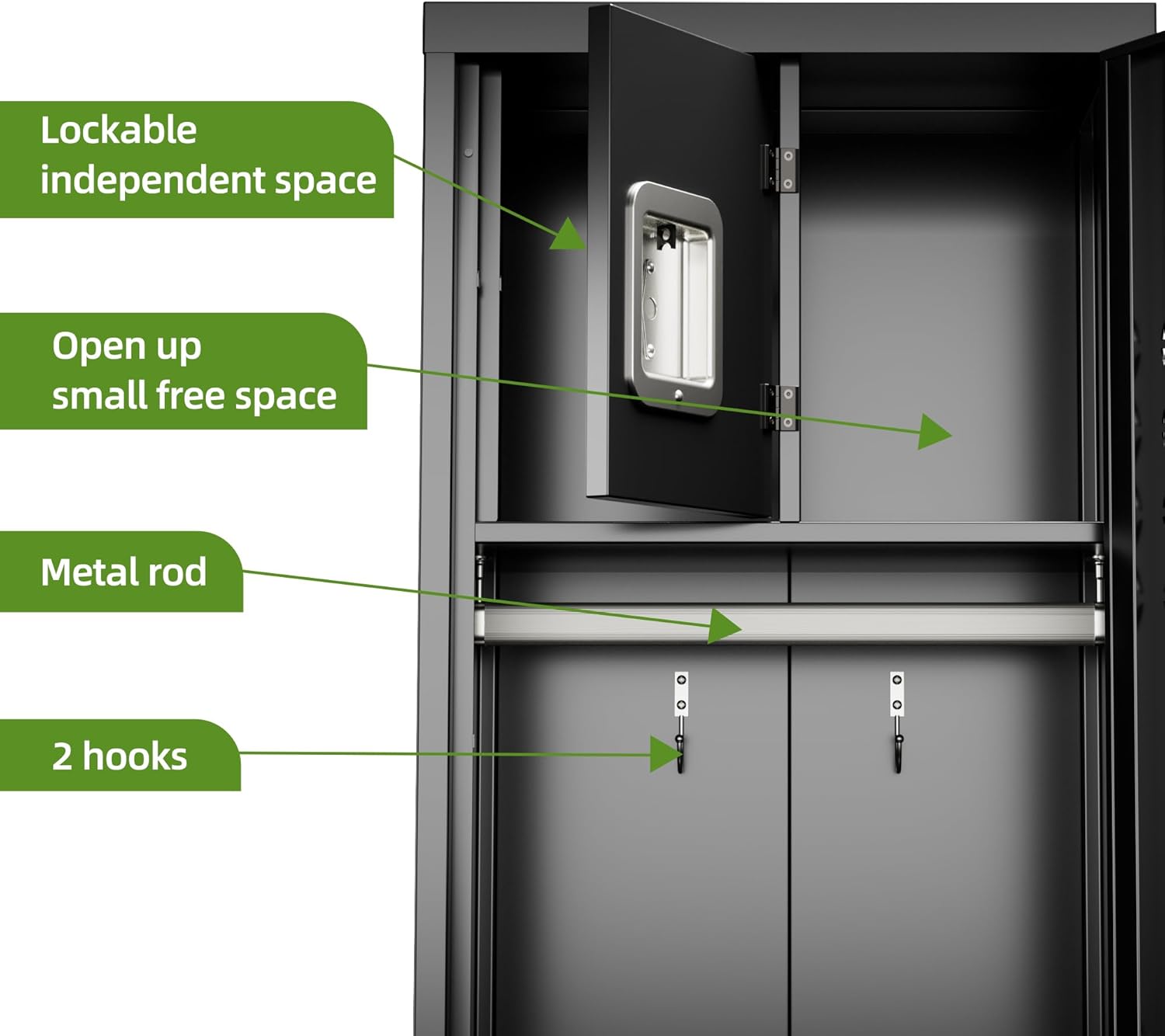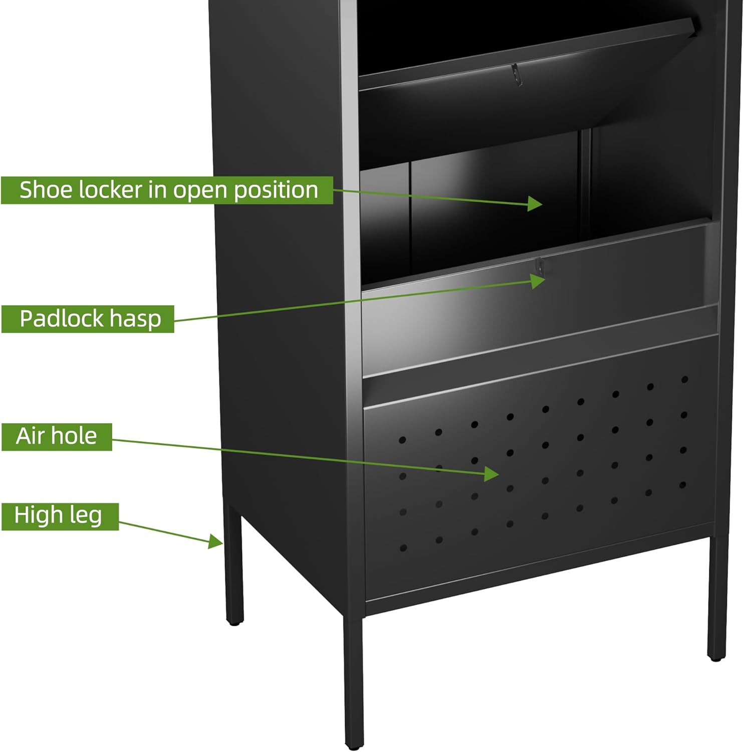 - 【Secure Storage with Dual Locks】Metal locker features a lockable shoe compartment and a lockable upper cabinet for phones, wallets, or keys, Ensure locker privacy and security.Small lockable drawers above metal lockers for secure electronics storage,cell phone or other small valuables.Size:15.8"D x 21.7"W x 72"H.