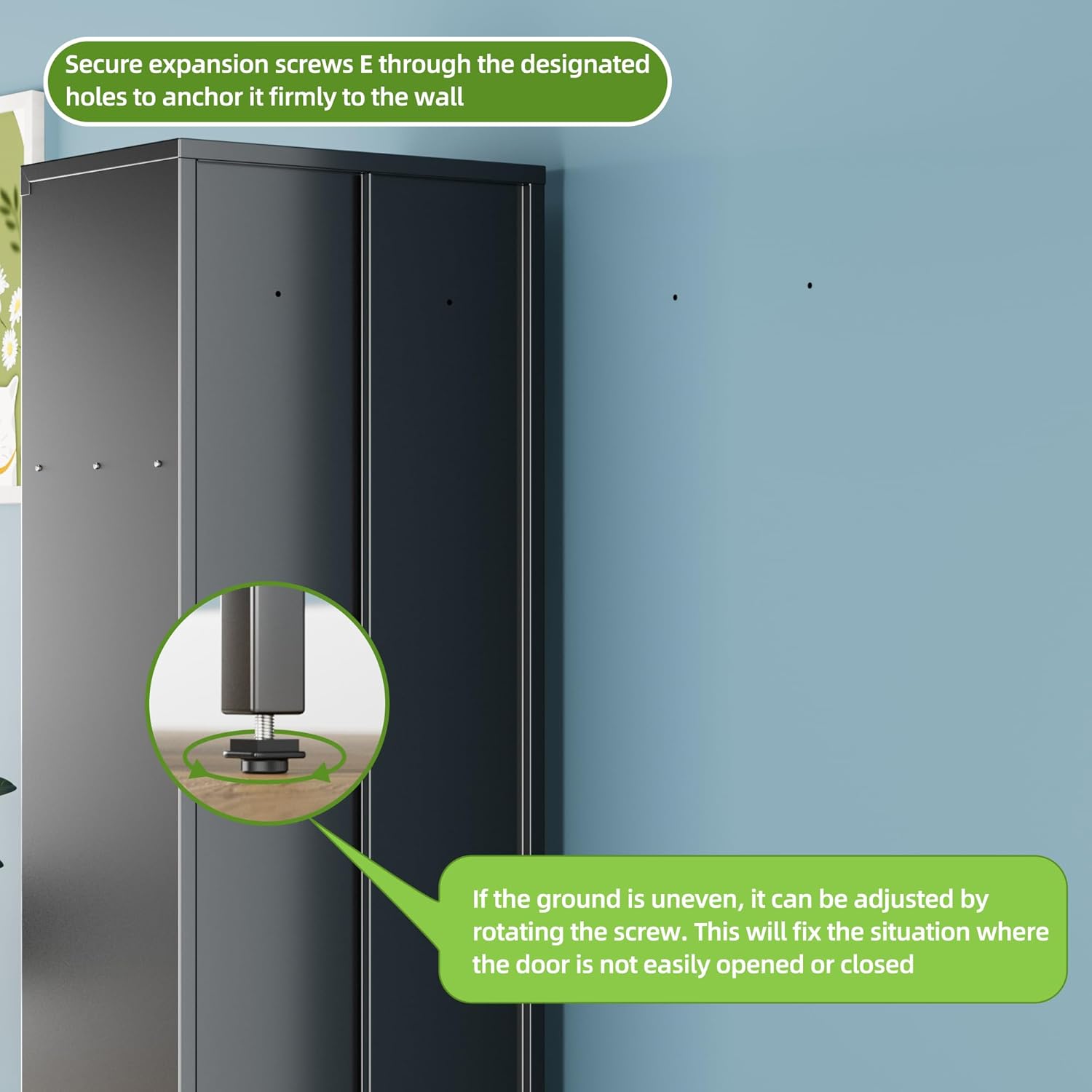 - 【Easy-Clean and Assemble】Metal locker standing foot simplifying vacuuming or mopping underneath,Metal locker needs to be assembled after receipt,and the product packaging provides detailed assembly instructions, which is easy to assemble.