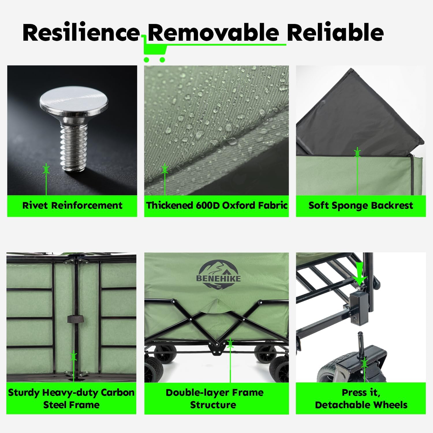 - 【PREMIUM MATERIALS & STURDY CONSTRUCTION】BENEHIKE Collapsible Camping Wagon is made of 600D Oxford cloth and foam, offering a stable and comfortable seating feeling similar to regular chairs while camping, watching events, or relaxing outdoors, relieving fatigue from prolonged standing.