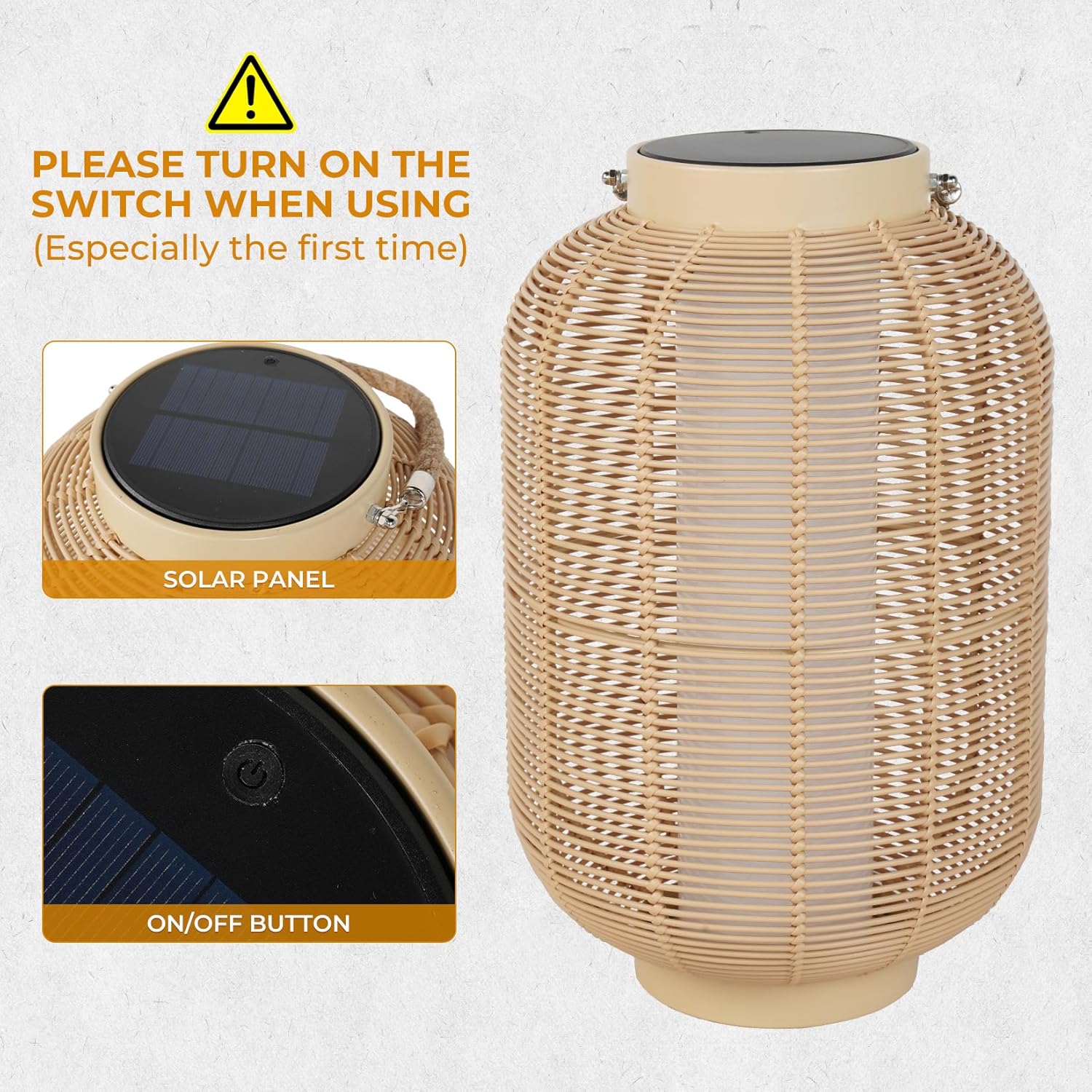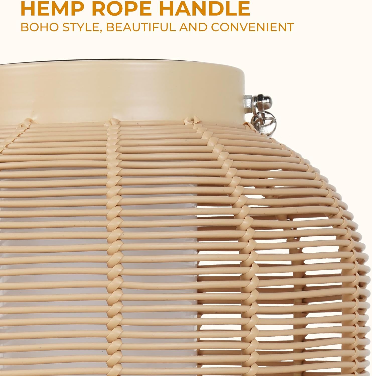 - BOHO STYLE: Our hanging solar LED lantern is the perfect rustic addition to your outdoor space. Made of natural toned wicker, its airy design allows warm light to shine through and create a charming atmosphere