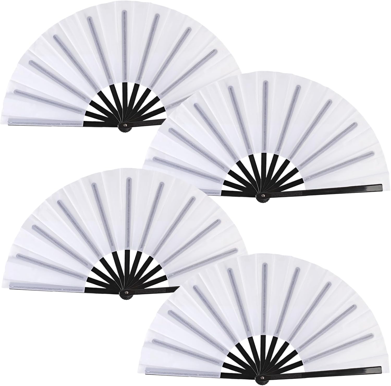 4 Pack Large Folding Hand Fan for Line Dance & Popping, Large Clap Rave Fan Chinese Kung Fu Hand Fan Decorative Folding Fans for Dance, Performance, Festival or Home Decorations(Black Pole White)