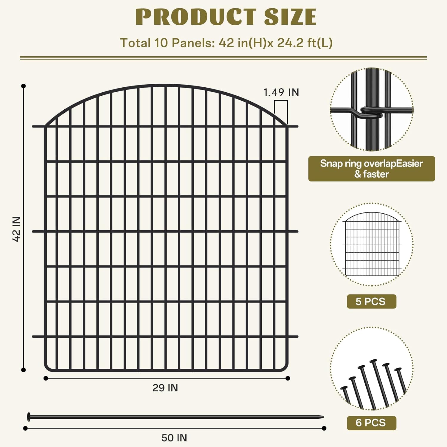 - TALL GARDEN FENCE - Single panel fence size: 42 in (H) X 29 in (L), total 10 panels size: 42in (H) X 24.2ft (L). The height is enough to block large dogs, and the longer length to meet more of your needs, you can connect these fences to any shapes you need