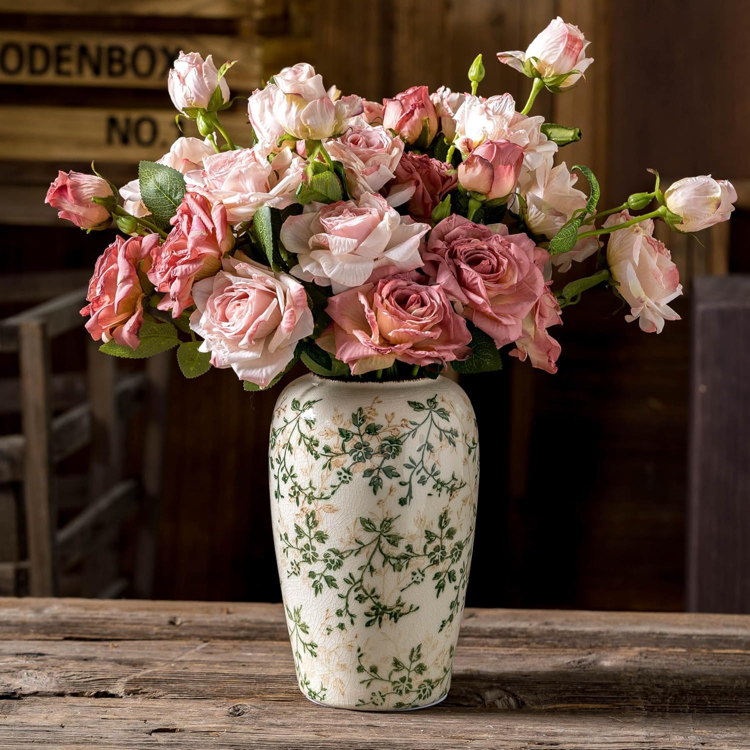 - Effortless Maintenance & Styling: Designed for easy cleaning and long-lasting use, this beige and green vase seamlessly blends with various themes—from vintage home decor to modern farmhouse. Its neutral palette complements white vases home decor setups and chinoiserie decor collections.