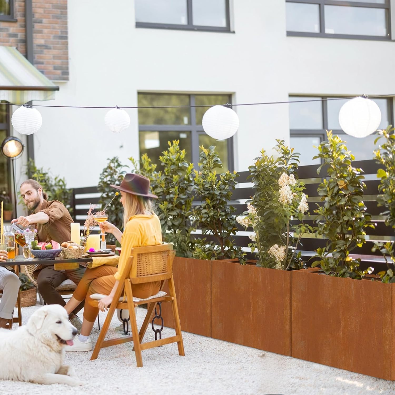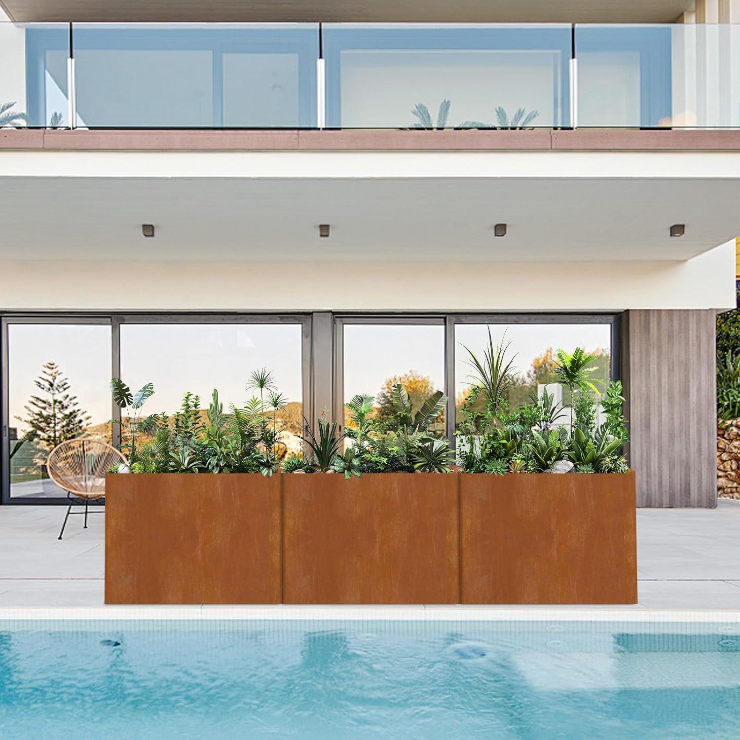- Metal planter box for Outdoor Plants: Made from Cor ten steel, a high-phosphorus copper-chromium-nickel alloy, forming a stable rust-like patina that protects against further degradation