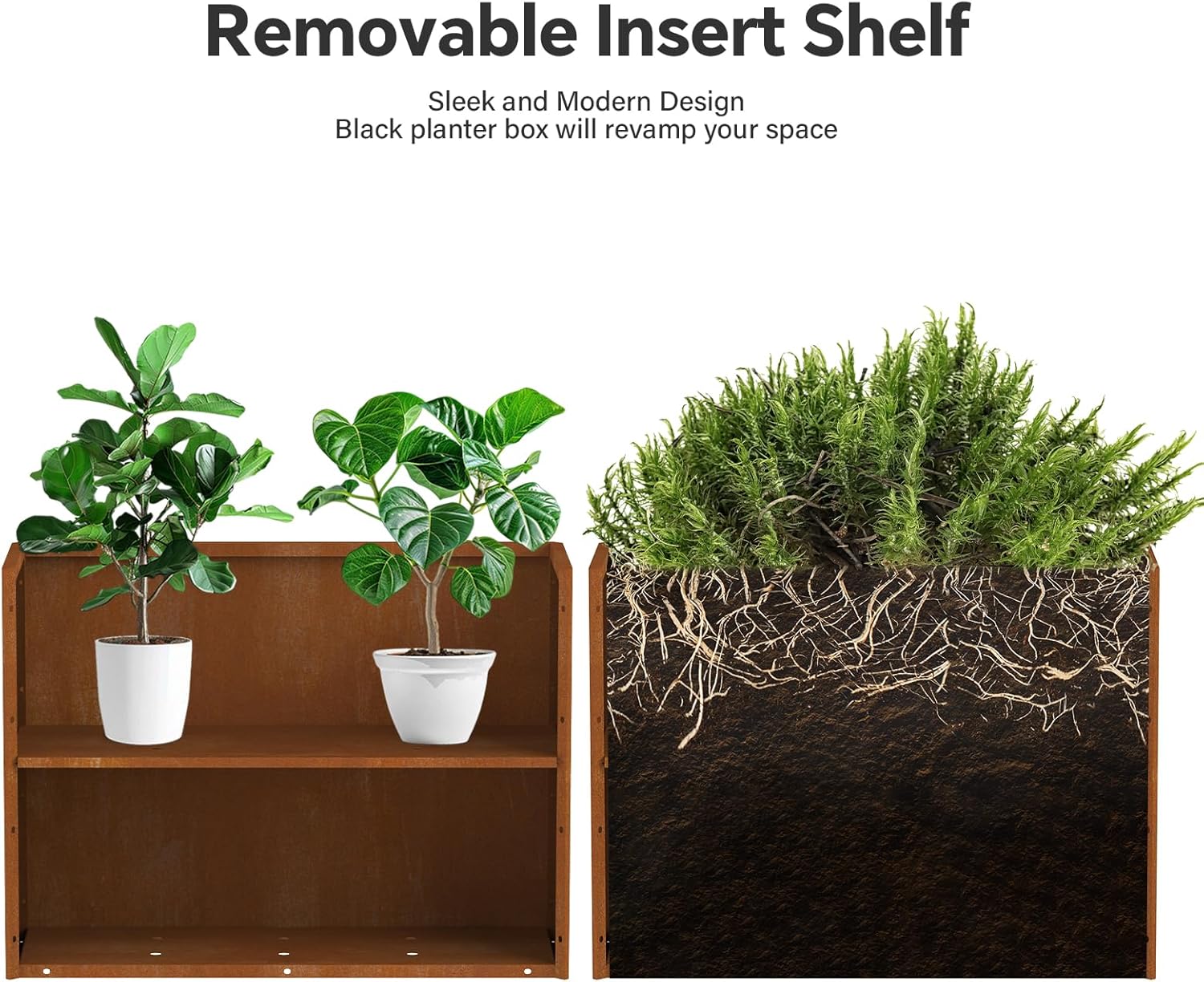 - Removable Insert Shelf: You can install the shelf at the middle of the tall rectangular planter for shorter plants or filling in soil, or remove the shelf for tall plants, which can meet the growth needs of different plants